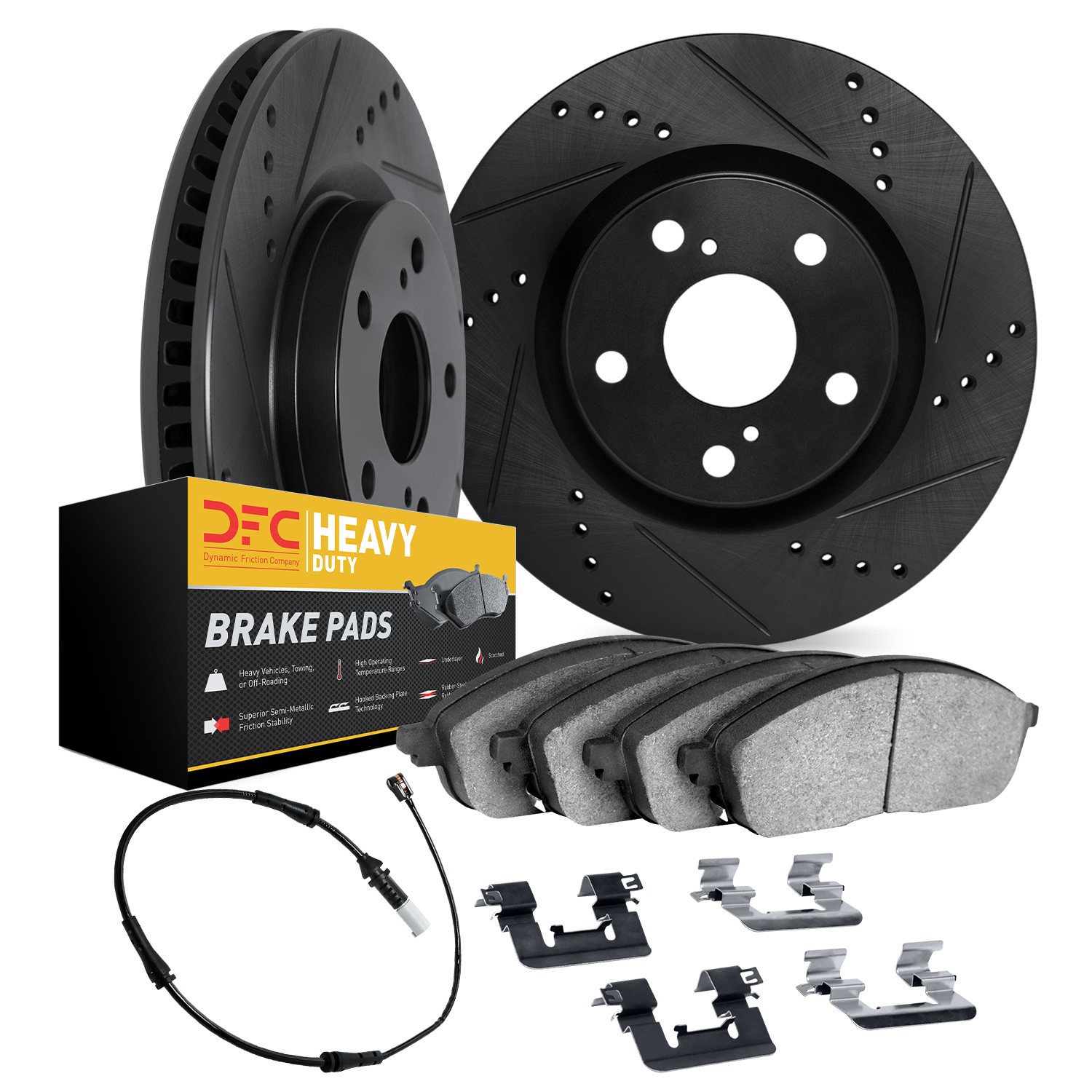 - DFC Brake Rotor - Drilled & Slotted - Black w/HD Brake Pad w/HW Kit & Sensor