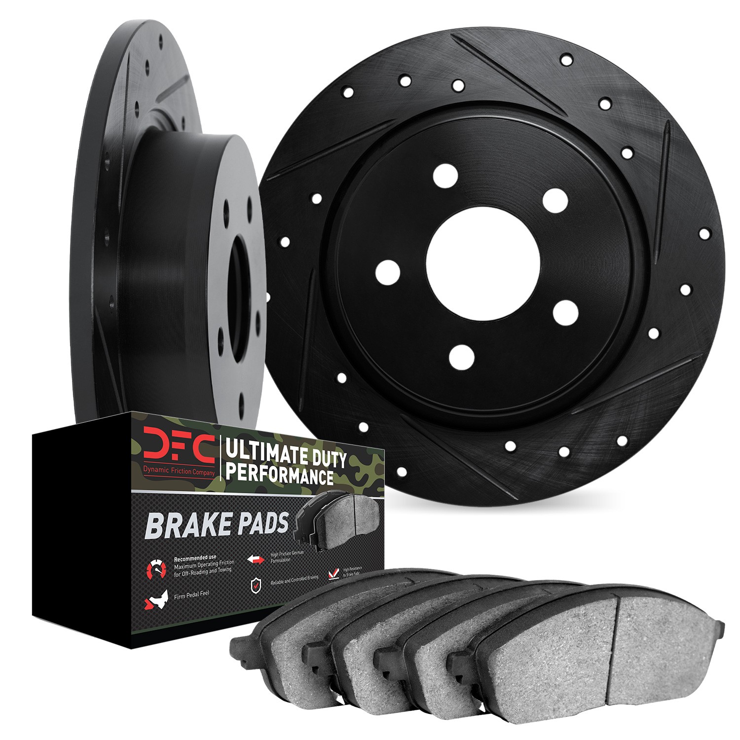 - DFC Brake Rotor - Drilled & Slotted - Black- HD Brake Pad