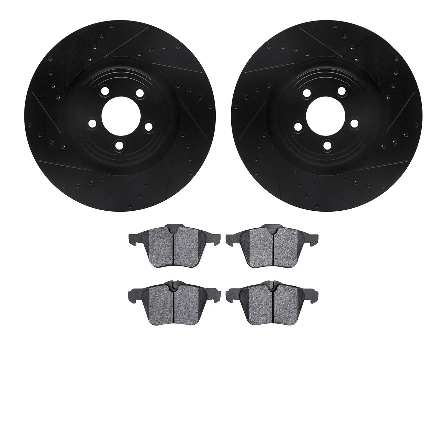 - DFC Rotors-Drilled and Slotted-Black with 5000 Advanced Brake Pads