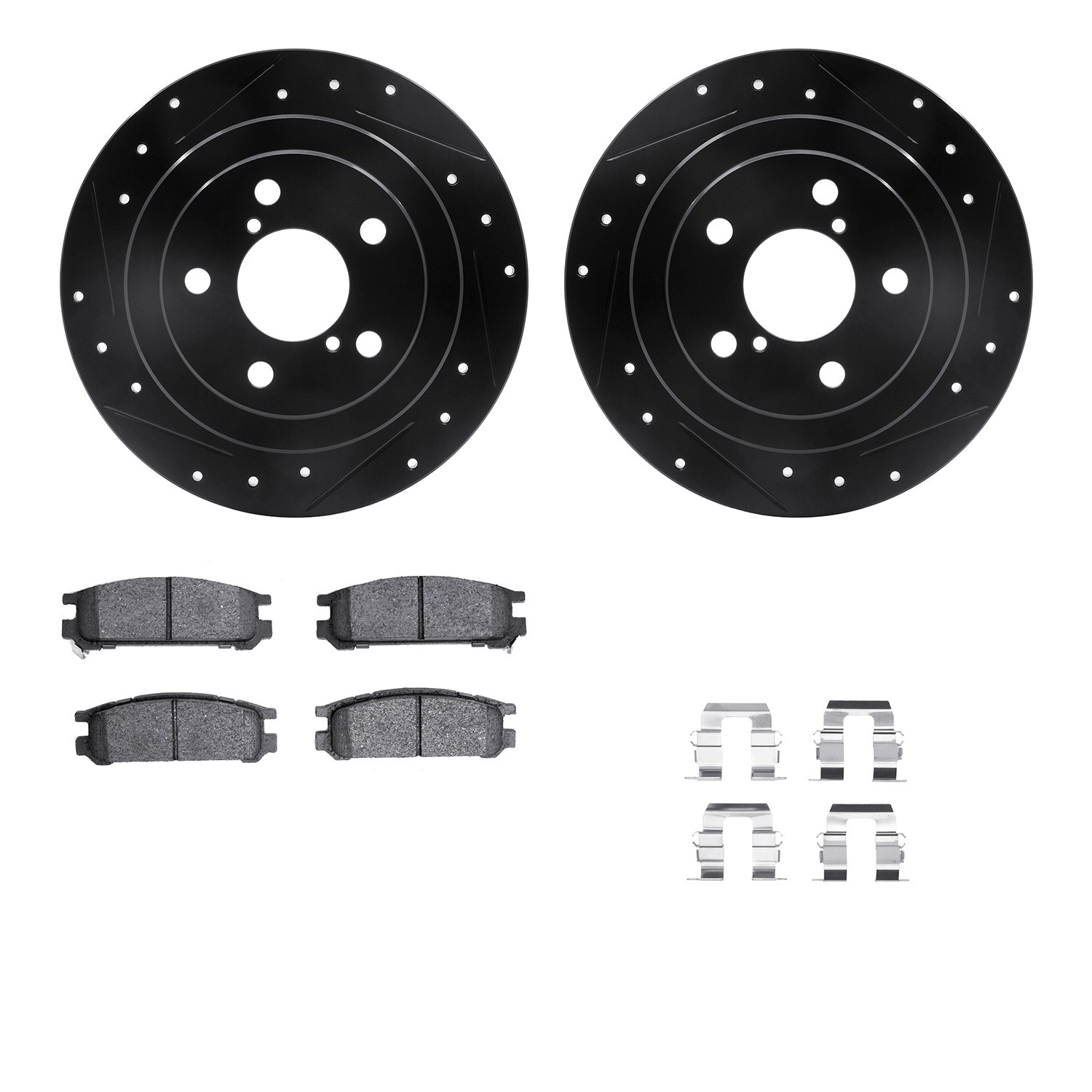 - DFC Rotors-Drilled & Slotted-Black w/ 5000 Advanced Brake Pads Incl Hdw