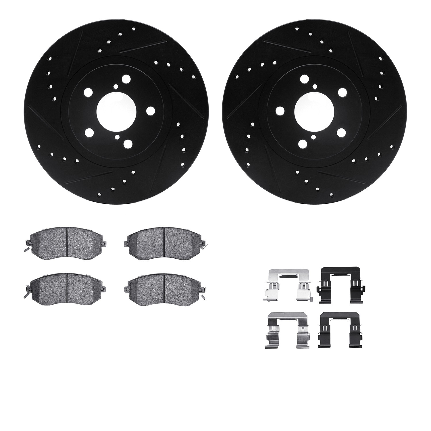 - DFC Rotors-Drilled & Slotted-Black w/ 5000 Advanced Brake Pads Incl Hdw
