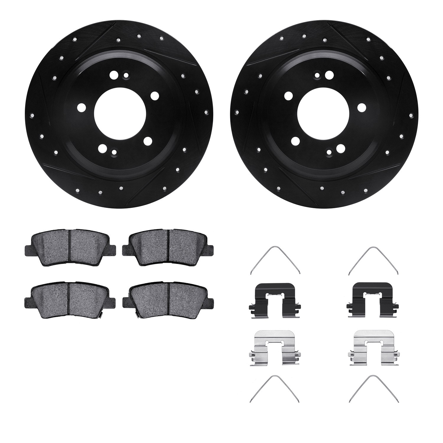 - DFC Rotors-Drilled & Slotted-Black w/ 5000 Advanced Brake Pads Incl Hdw