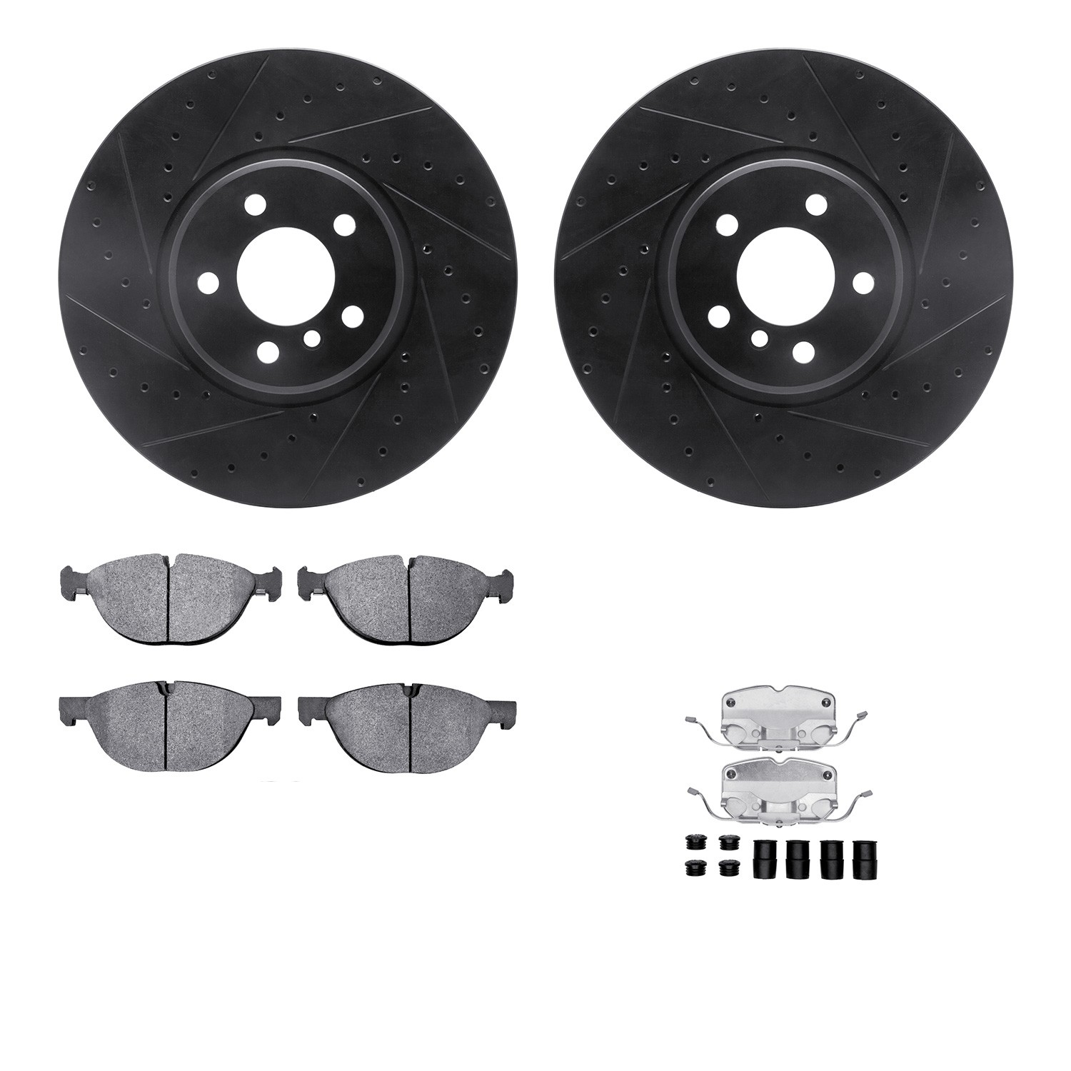 - DFC Brake Rotor - Dimpled & Slotted - Black w/5000 Brake Pads & HW Kit