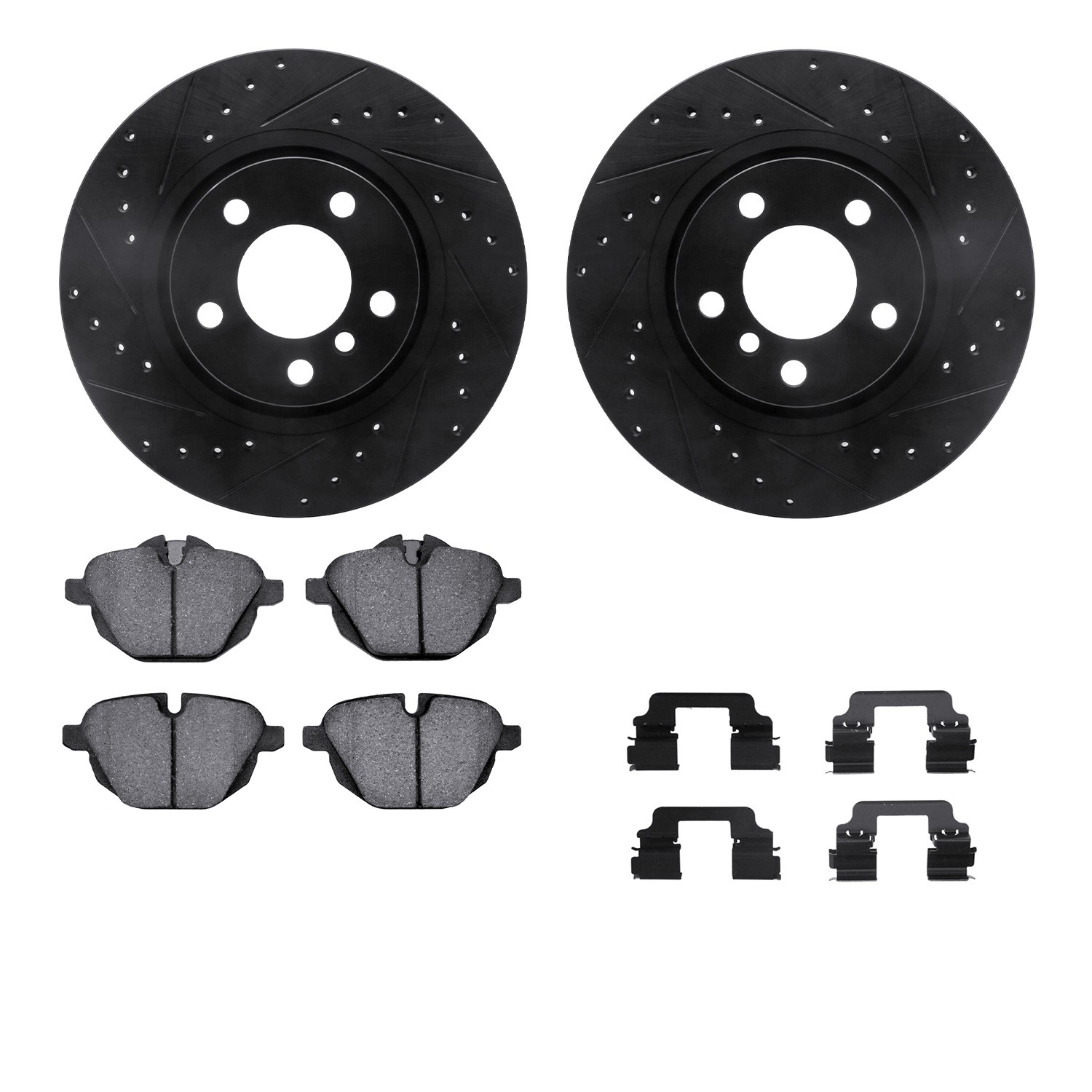 - DFC Brake Rotor - Dimpled & Slotted - Black w/5000 Brake Pads & HW Kit