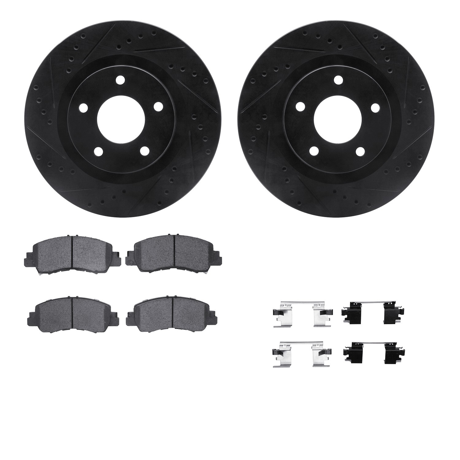 - DFC Rotors-Drilled & Slotted-Black w/ 5000 Advanced Brake Pads Incl Hdw