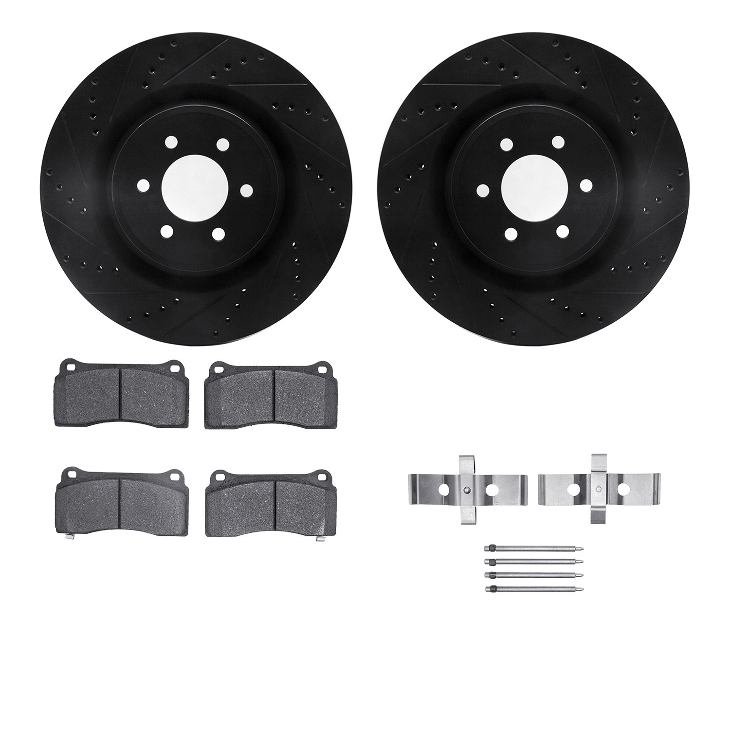 - DFC Rotors-Drilled & Slotted-Black w/ 5000 Advanced Brake Pads Incl Hdw
