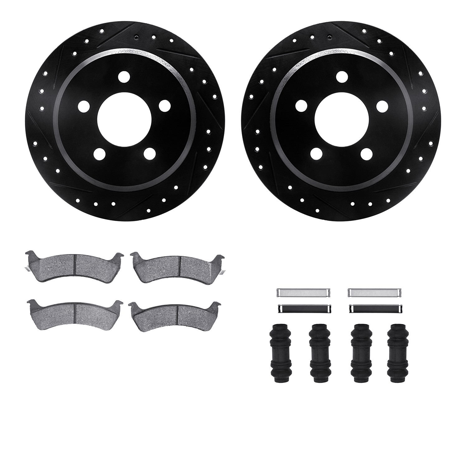- DFC Brake Rotor - Drilled & Slotted - Black w/5000 Brake Pads & HW Kit