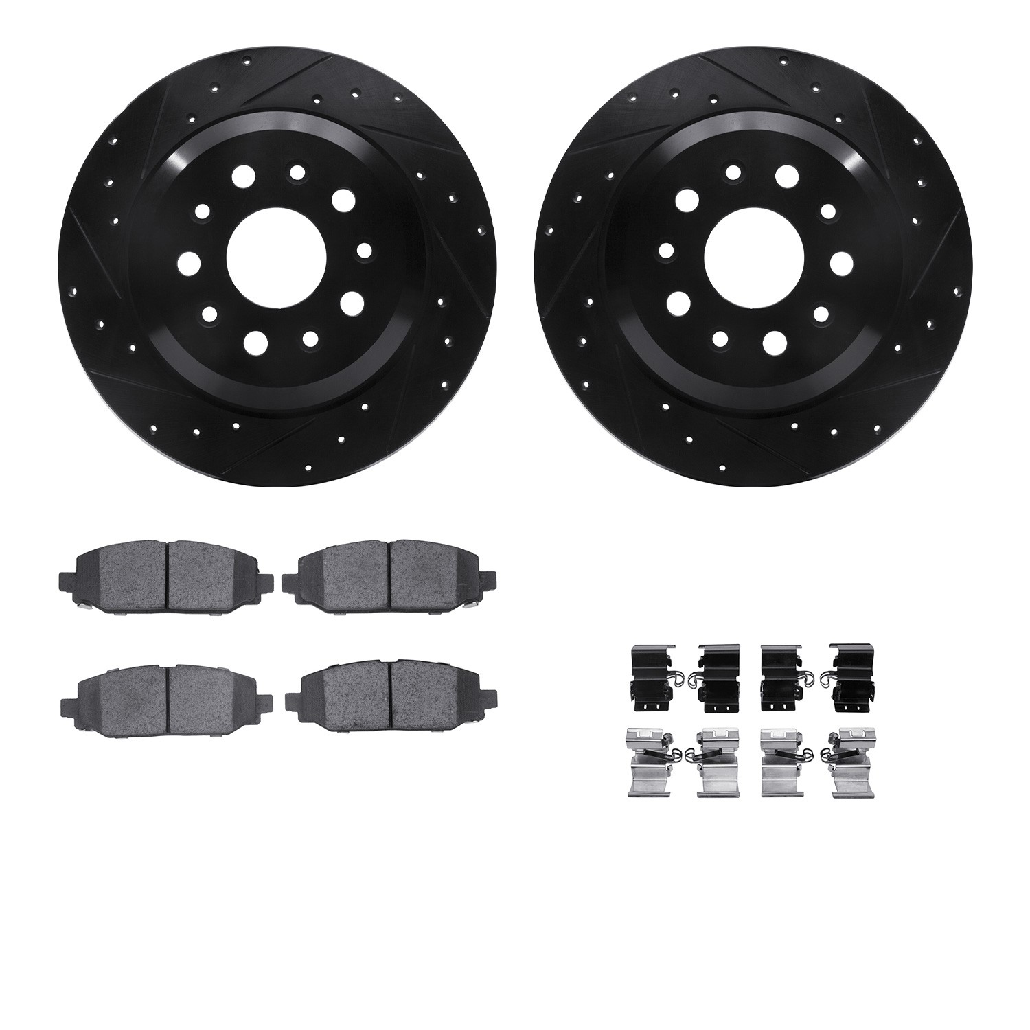 - DFC Rotors-Drilled & Slotted-Black w/ 5000 Advanced Brake Pads Incl Hdw