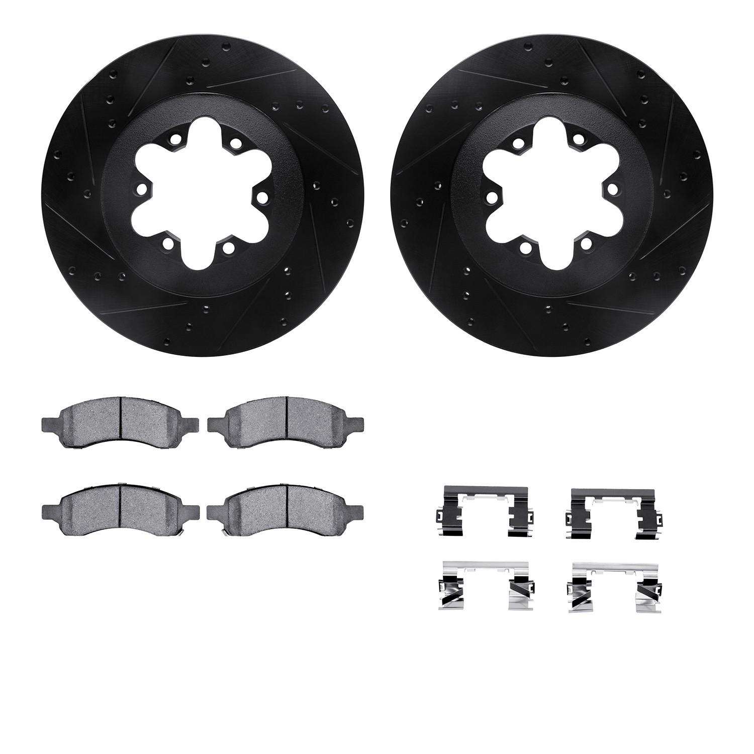 - DFC Brake Rotor - Dimpled & Slotted - Black w/5000 Brake Pads & HW Kit