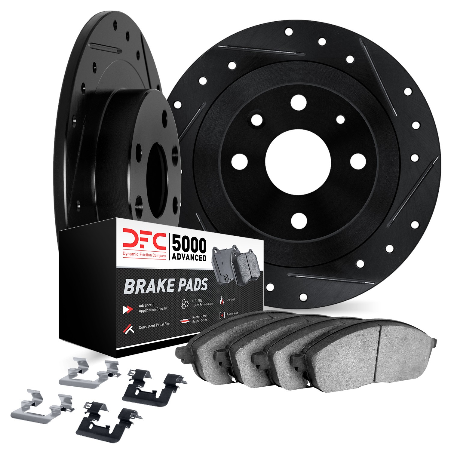 - DFC Rotors-Drilled & Slotted-Black w/ 5000 Advanced Brake Pads Incl Hdw