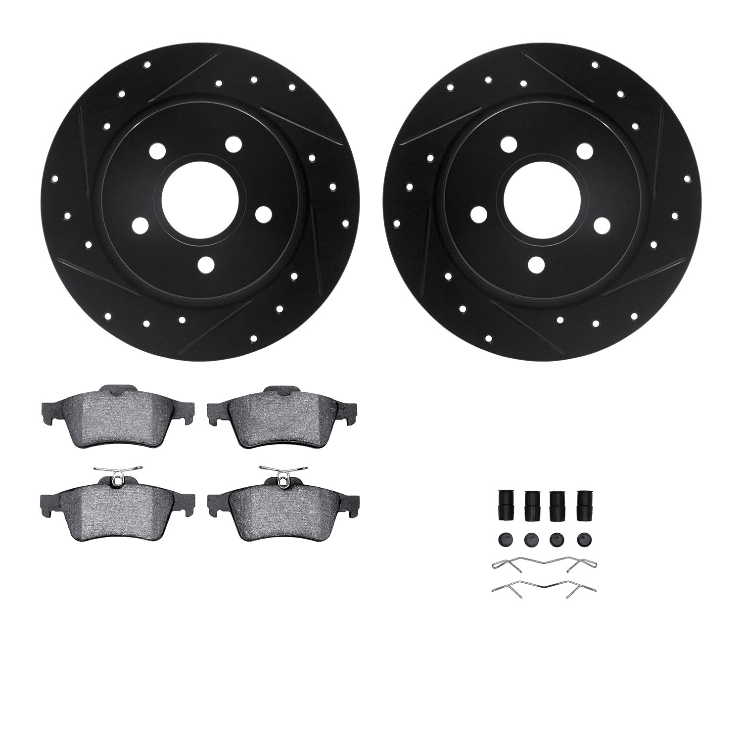 - DFC Rotors-Drilled & Slotted-Black w/ 5000 Advanced Brake Pads Incl Hdw