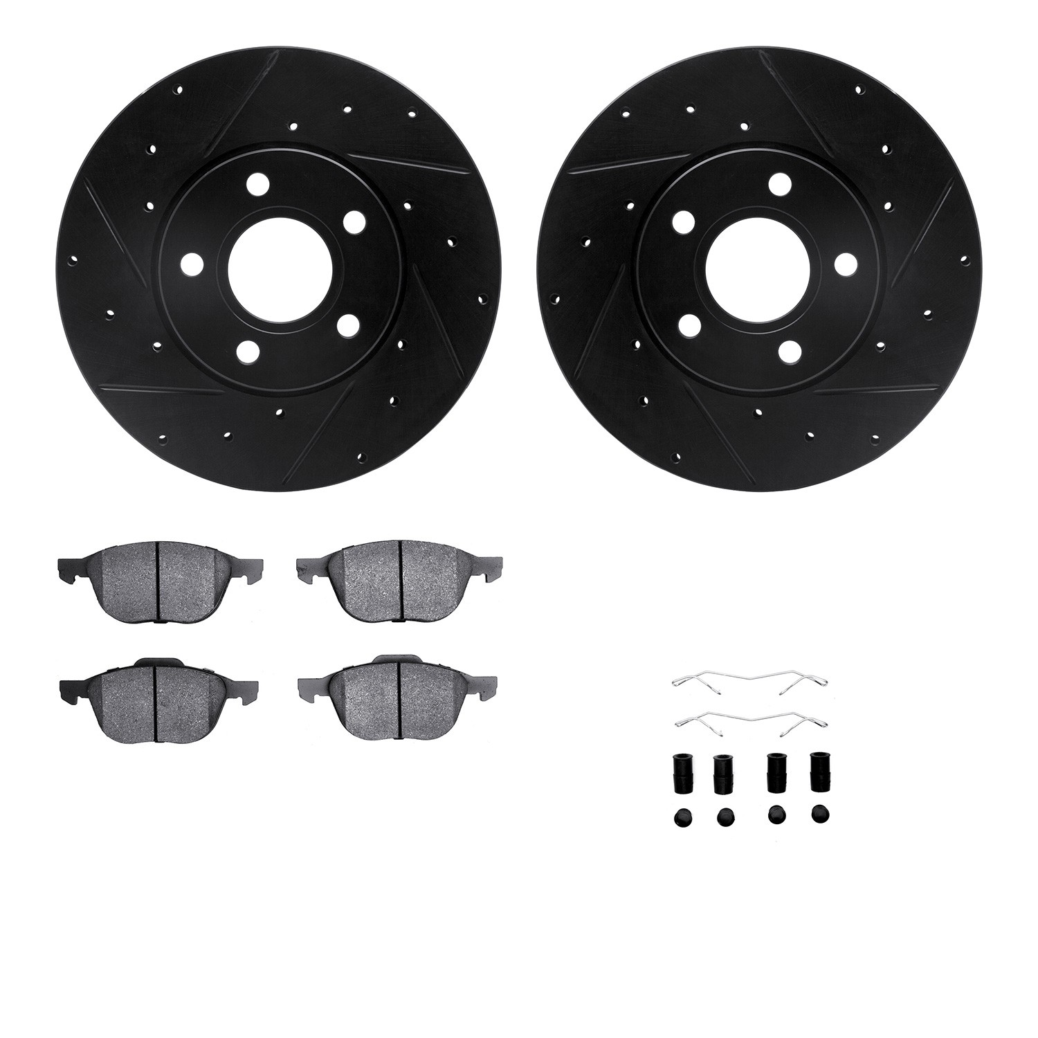 - DFC Rotors-Drilled & Slotted-Black w/ 5000 Advanced Brake Pads Incl Hdw