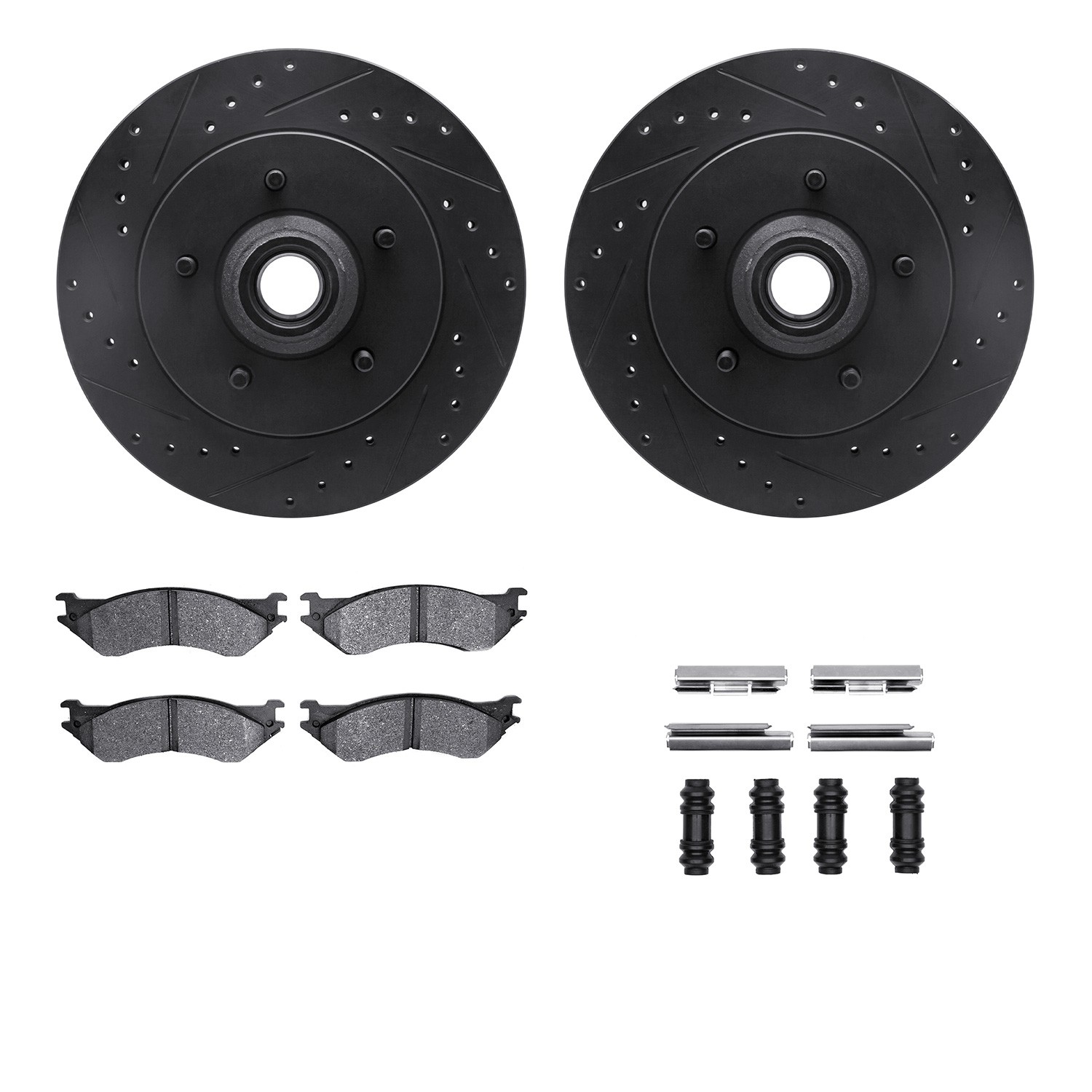 - DFC Brake Rotor - Drilled & Slotted - Black w/5000 Brake Pads & HW Kit