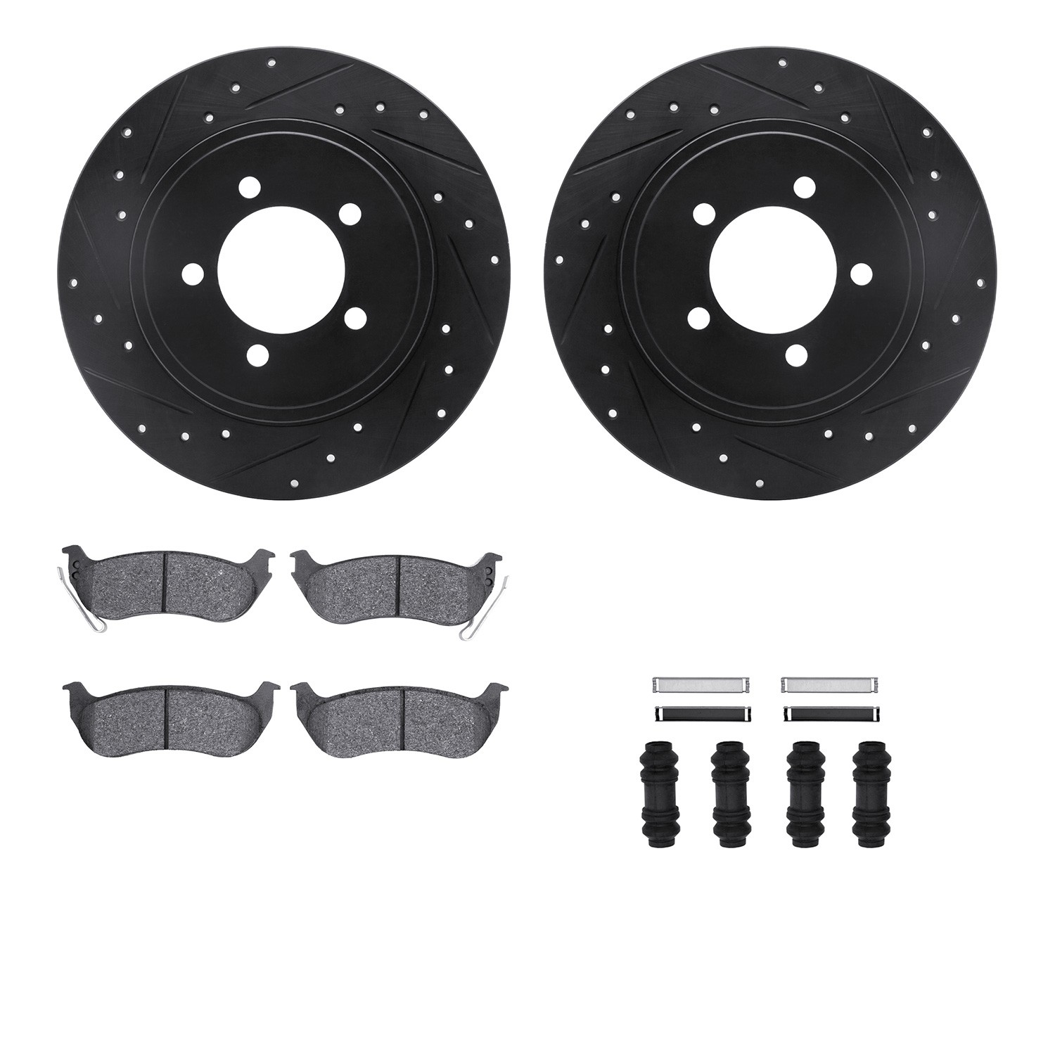 - DFC Brake Rotor - Dimpled & Slotted - Black w/5000 Brake Pads & HW Kit