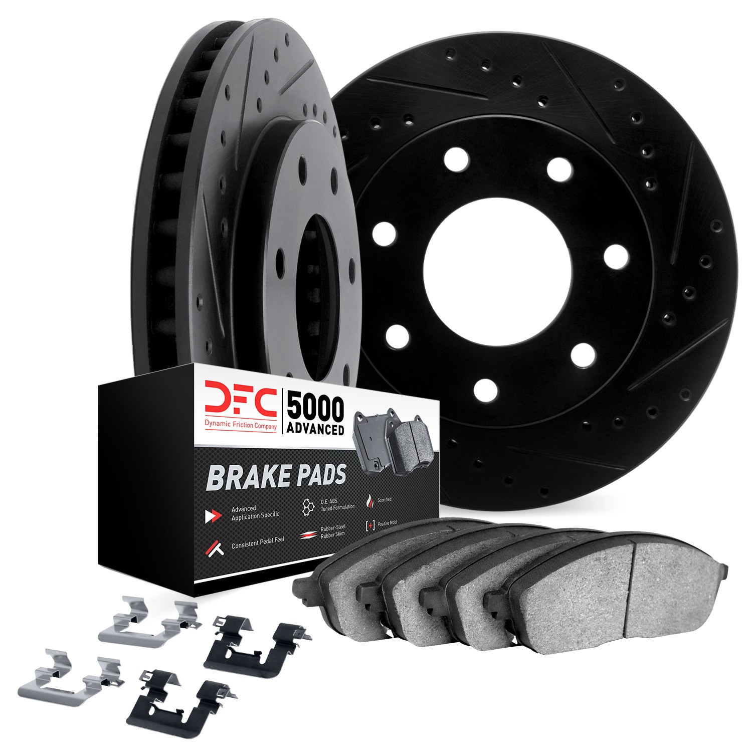 - DFC Rotors-Drilled & Slotted-Black w/ 5000 Advanced Brake Pads Incl Hdw