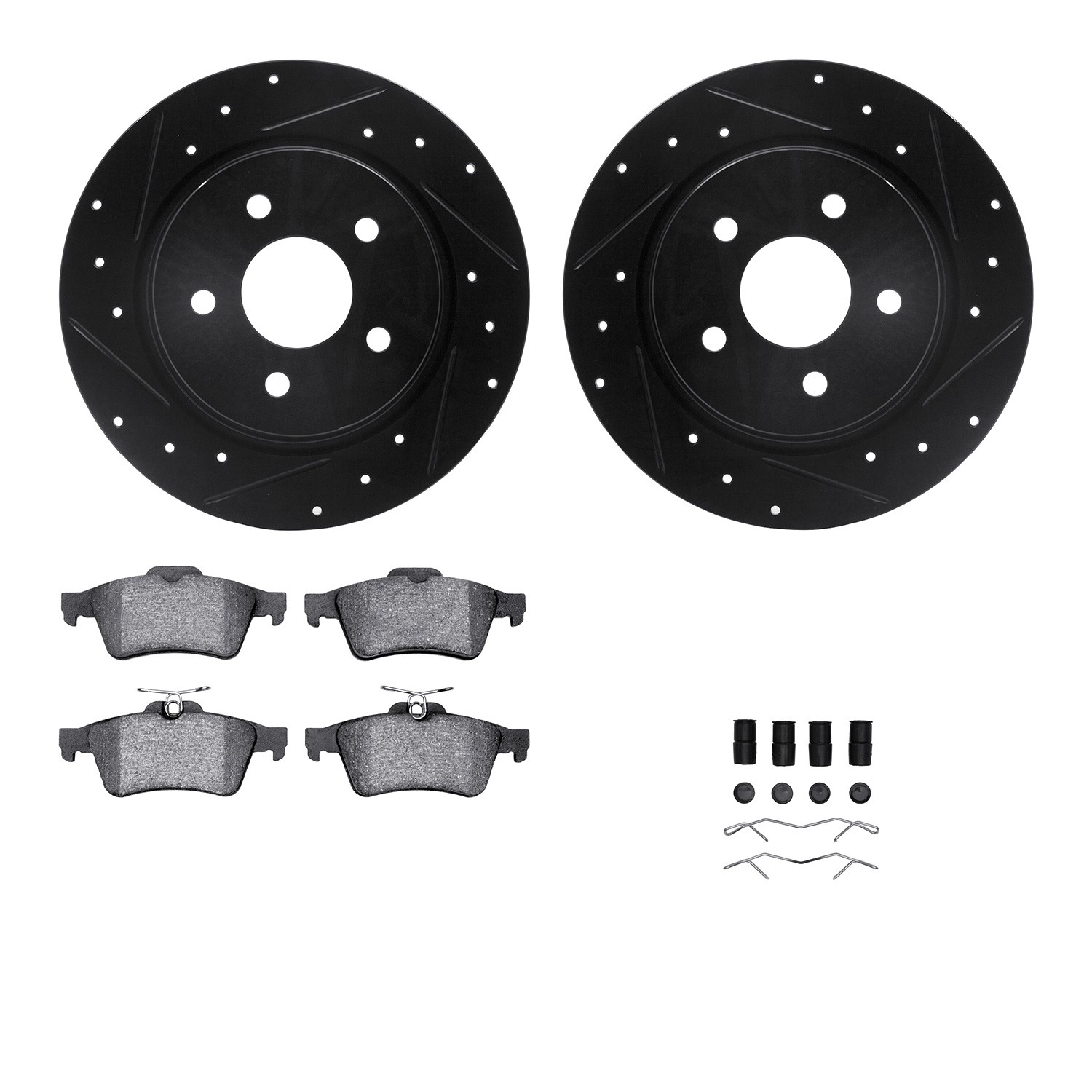 - DFC Brake Rotor - Dimpled & Slotted - Black w/5000 Brake Pads & HW Kit