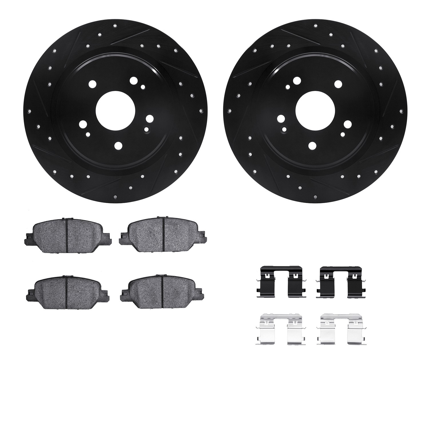- DFC Brake Rotor - Dimpled & Slotted - Black w/5000 Brake Pads & HW Kit