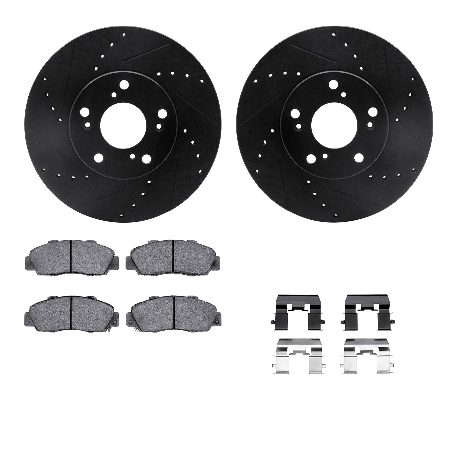 - DFC Rotors-Drilled & Slotted-Black w/ 5000 Advanced Brake Pads Incl Hdw