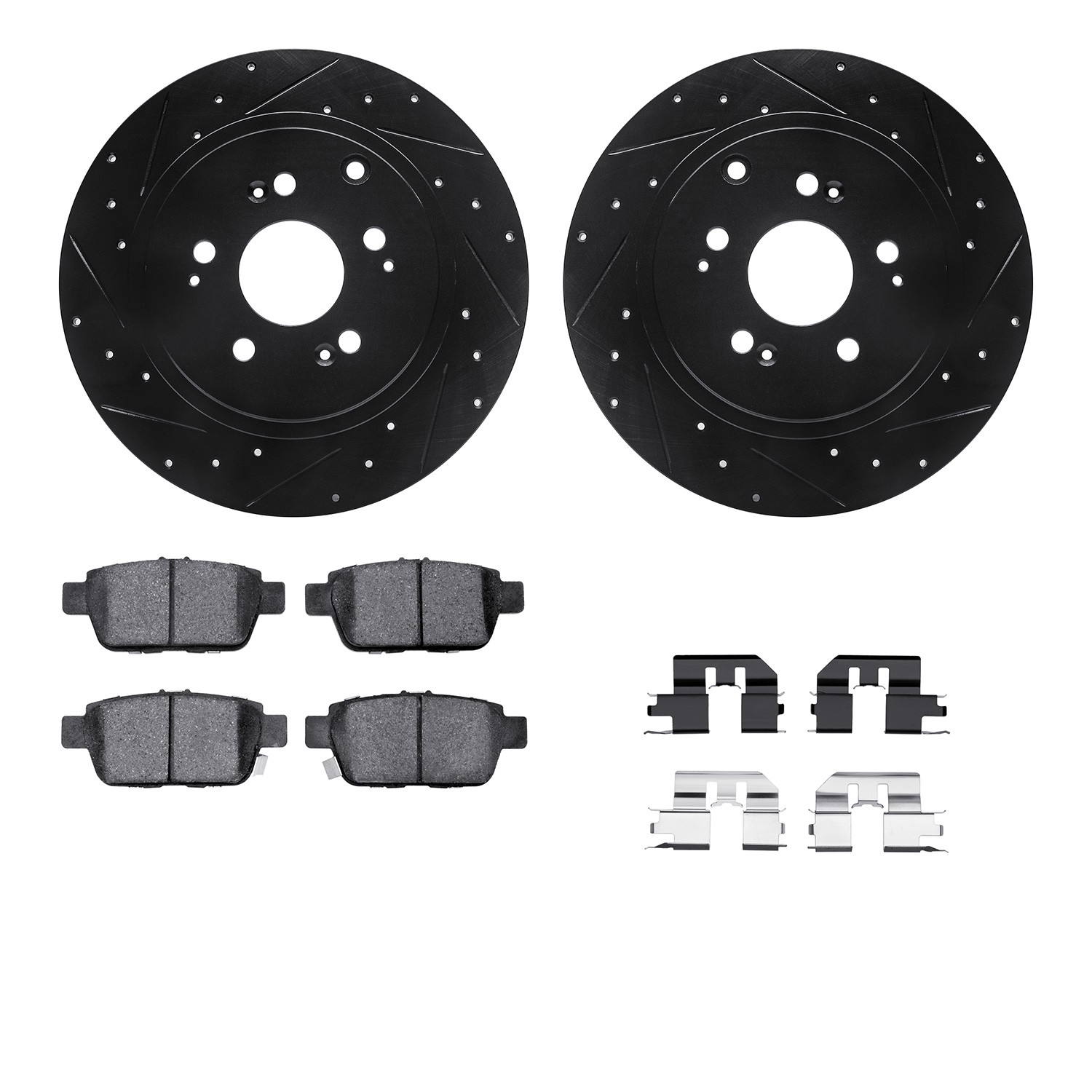 - DFC Brake Rotor - Dimpled & Slotted - Black w/5000 Brake Pads & HW Kit