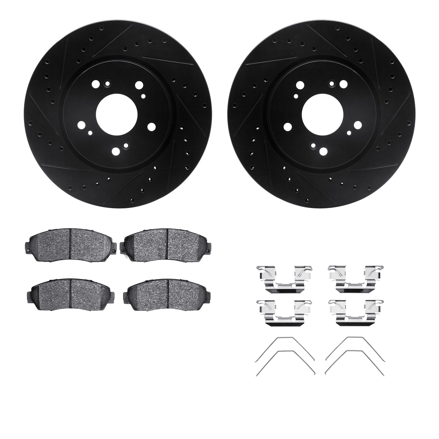 - DFC Brake Rotor - Dimpled & Slotted - Black w/5000 Brake Pads & HW Kit