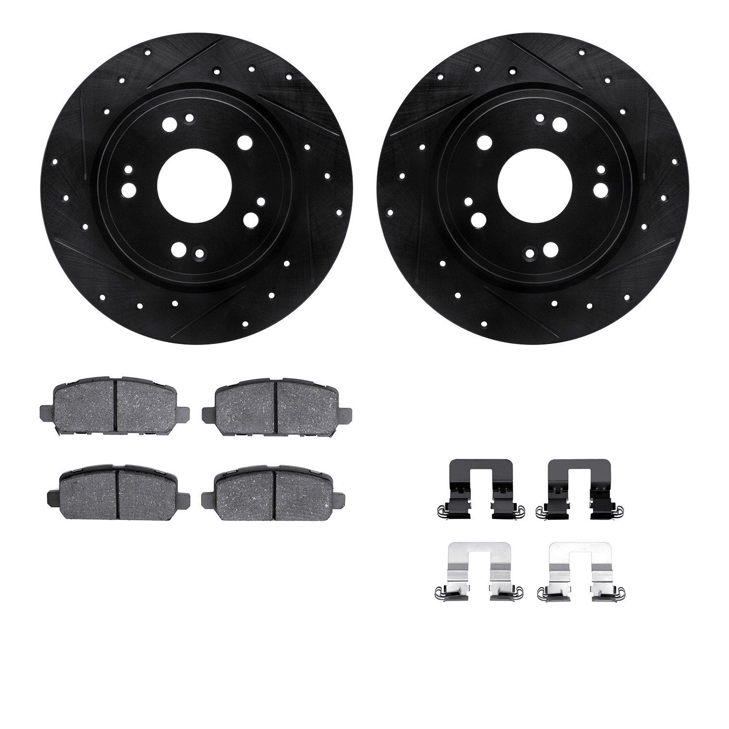 - DFC Rotors-Drilled & Slotted-Black w/ 5000 Advanced Brake Pads Incl Hdw