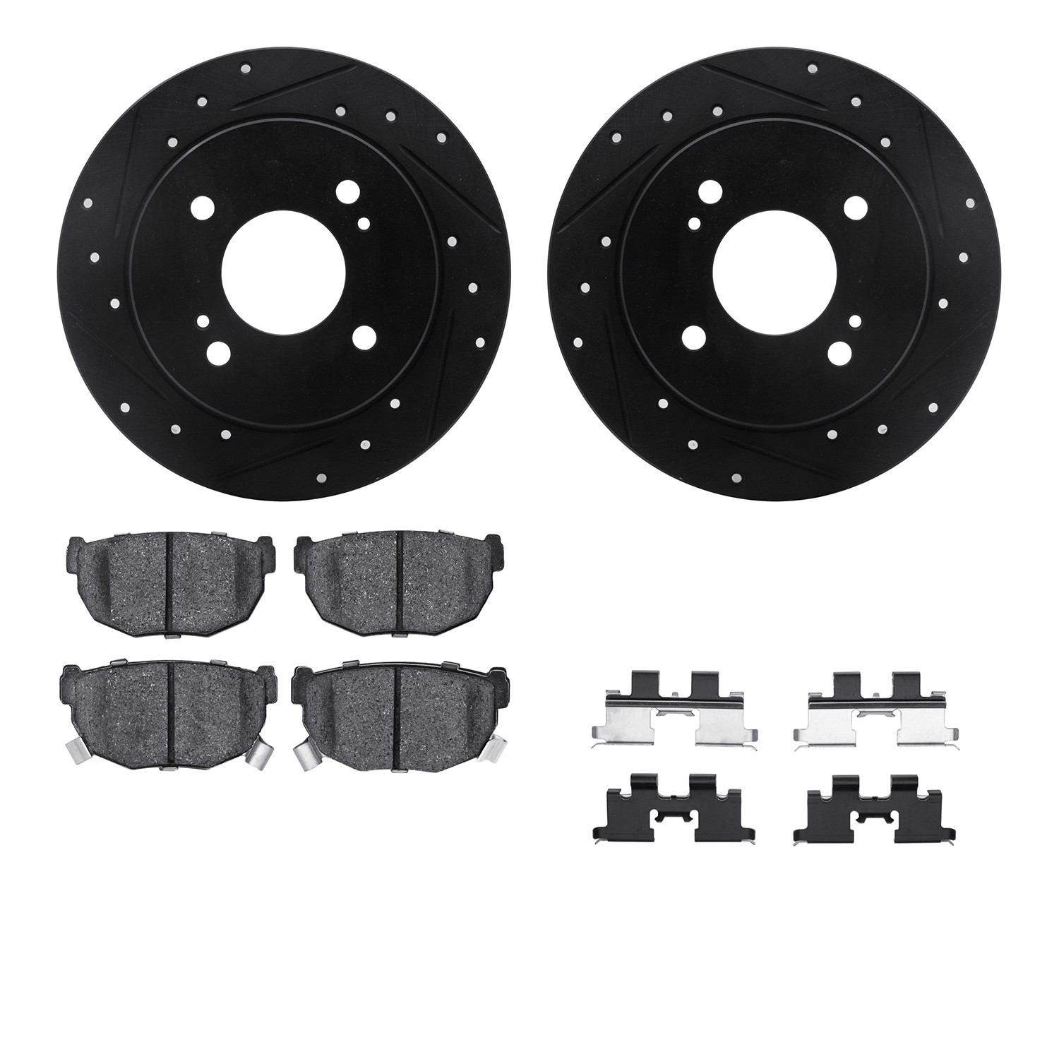 - DFC Rotors-Drilled & Slotted-Black w/ 5000 Advanced Brake Pads Incl Hdw