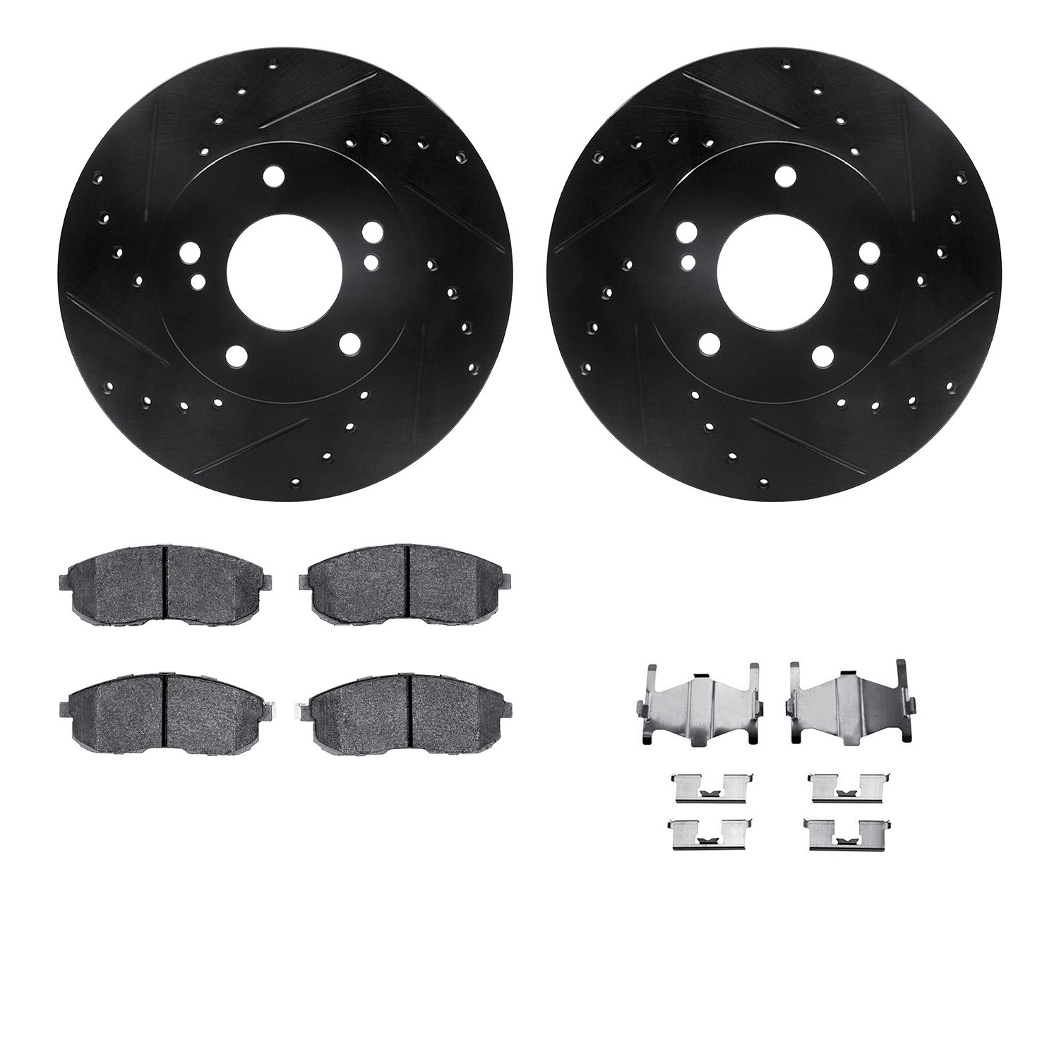 - DFC Rotors-Drilled & Slotted-Black w/ 5000 Advanced Brake Pads Incl Hdw