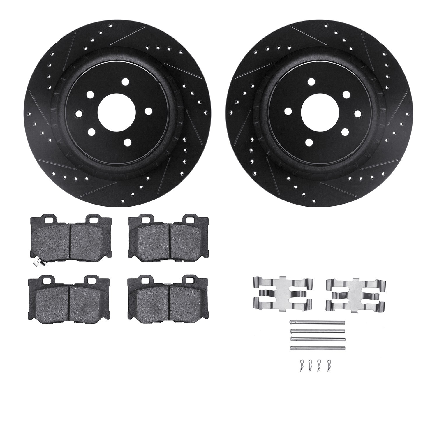 - DFC Rotors-Drilled & Slotted-Black w/ 5000 Advanced Brake Pads Incl Hdw