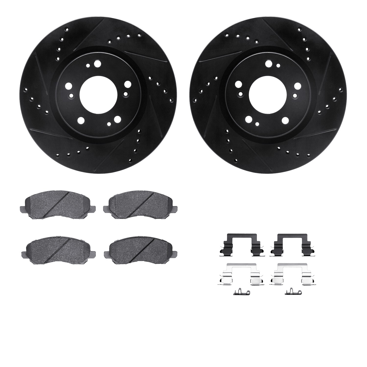 - DFC Rotors-Drilled & Slotted-Black w/ 5000 Advanced Brake Pads Incl Hdw