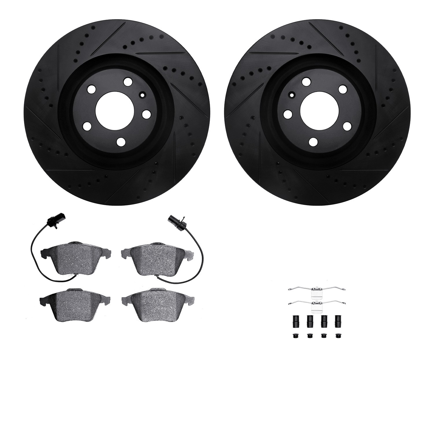 - DFC Rotors-Drilled & Slotted-Black w/ 5000 Advanced Brake Pads Incl Hdw