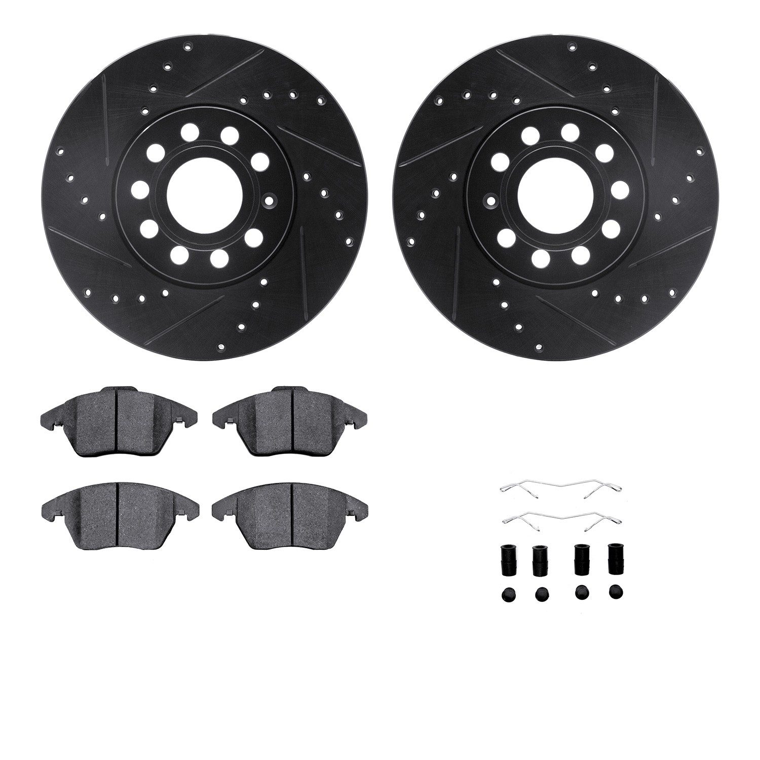 - DFC Rotors-Drilled & Slotted-Black w/ 5000 Advanced Brake Pads Incl Hdw