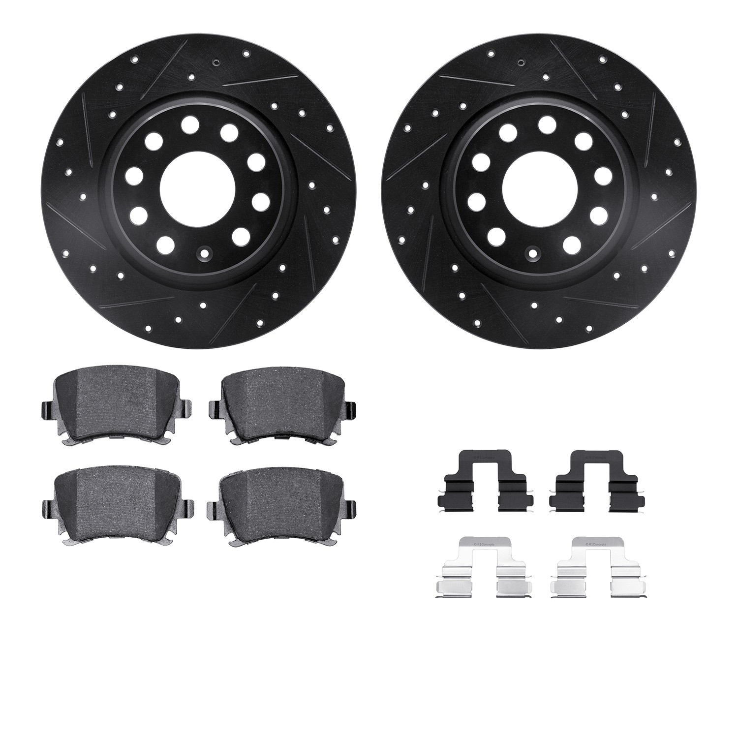 - DFC Rotors-Drilled & Slotted-Black w/ 5000 Advanced Brake Pads Incl Hdw