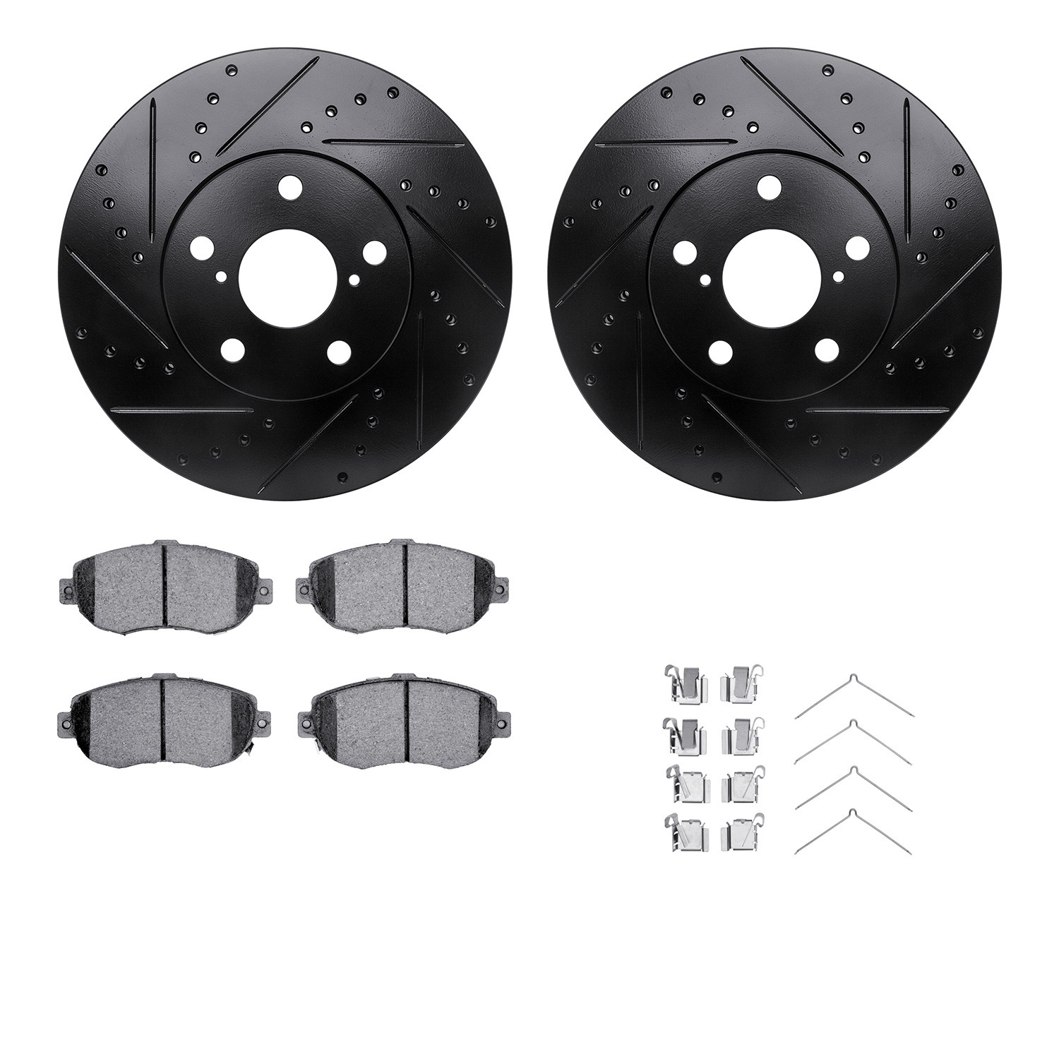 - DFC Rotors-Drilled & Slotted-Black w/ 5000 Advanced Brake Pads Incl Hdw