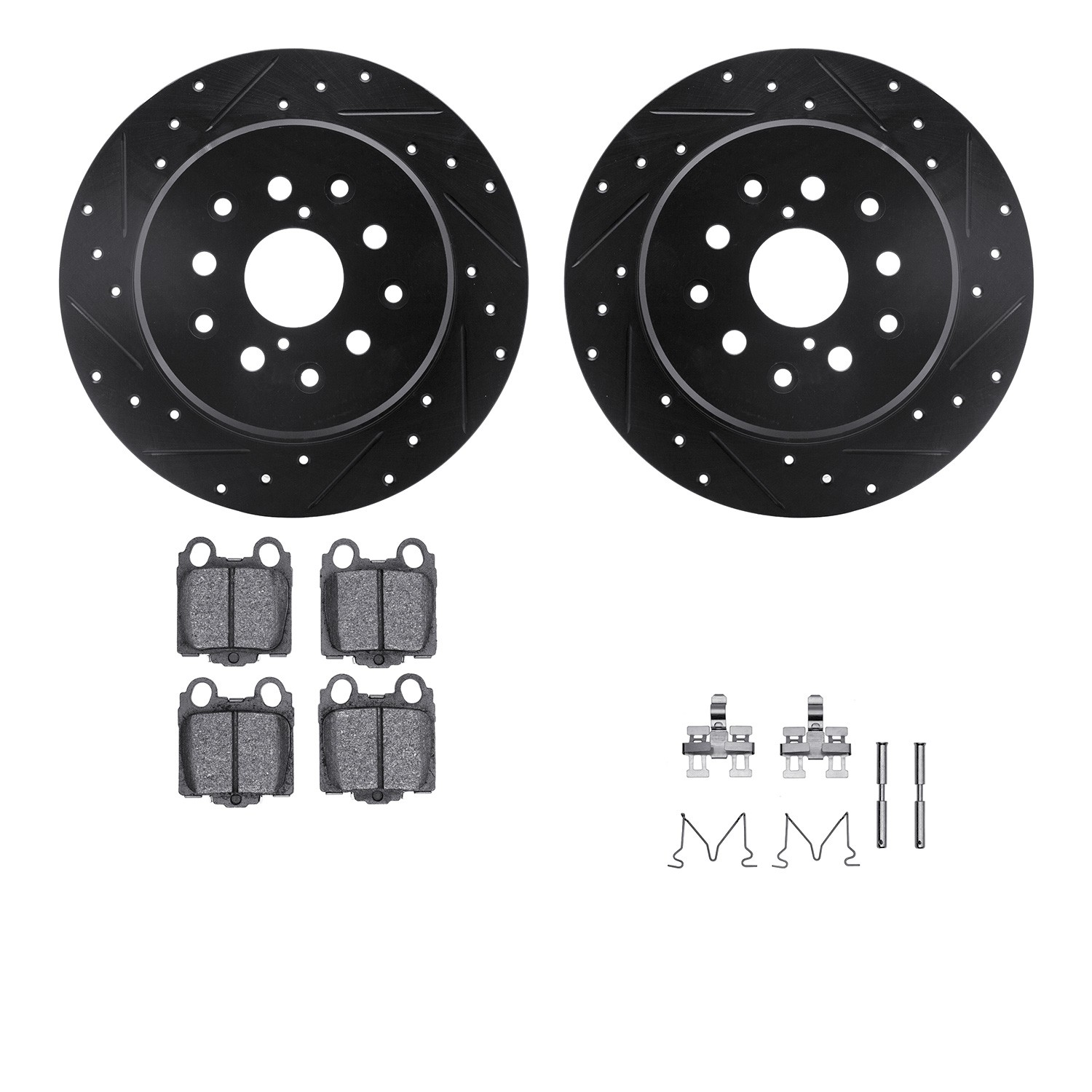 - DFC Rotors-Drilled & Slotted-Black w/ 5000 Advanced Brake Pads Incl Hdw