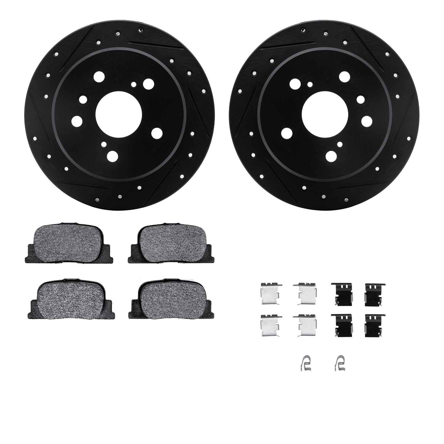 - DFC Rotors-Drilled & Slotted-Black w/ 5000 Advanced Brake Pads Incl Hdw