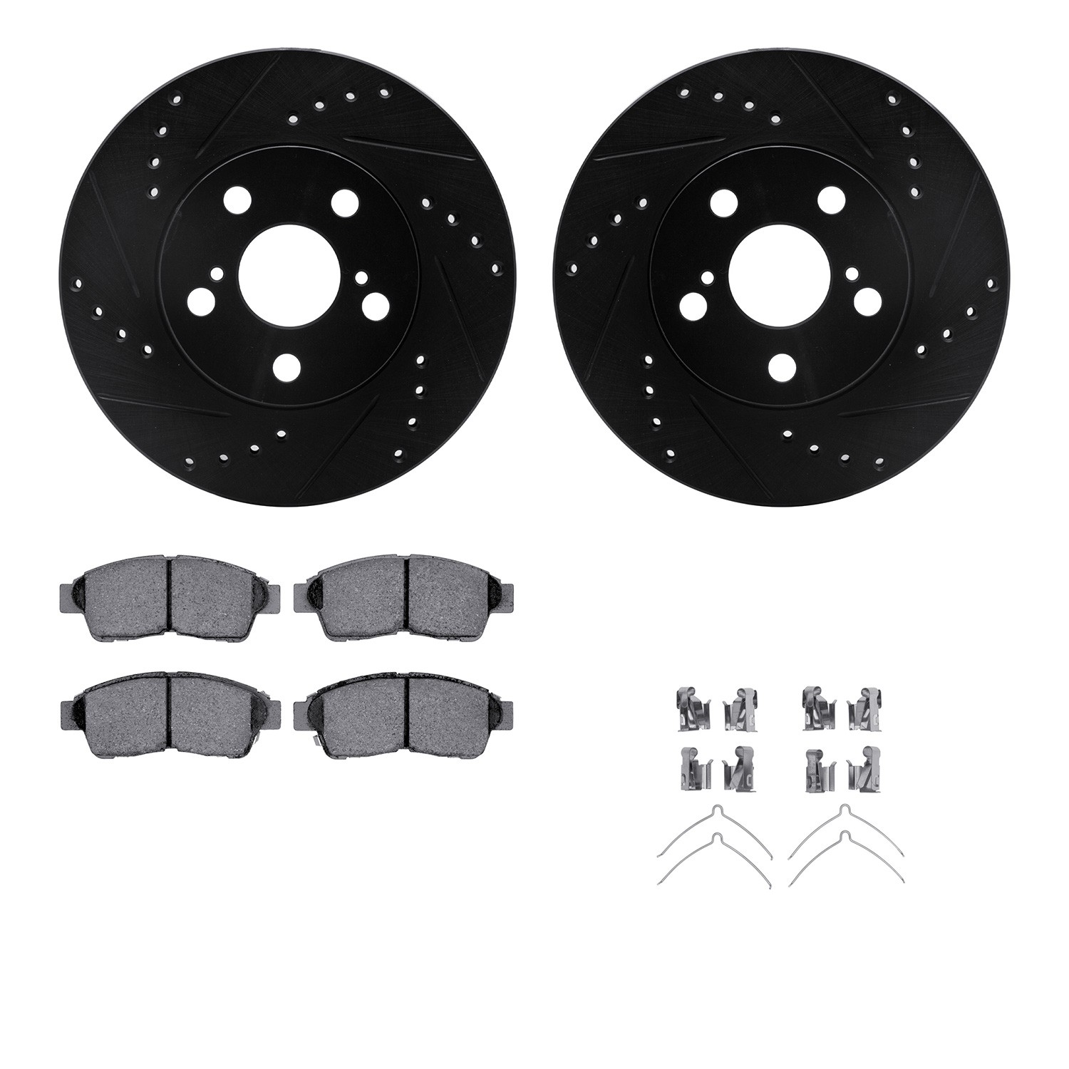 - DFC Rotors-Drilled & Slotted-Black w/ 5000 Advanced Brake Pads Incl Hdw