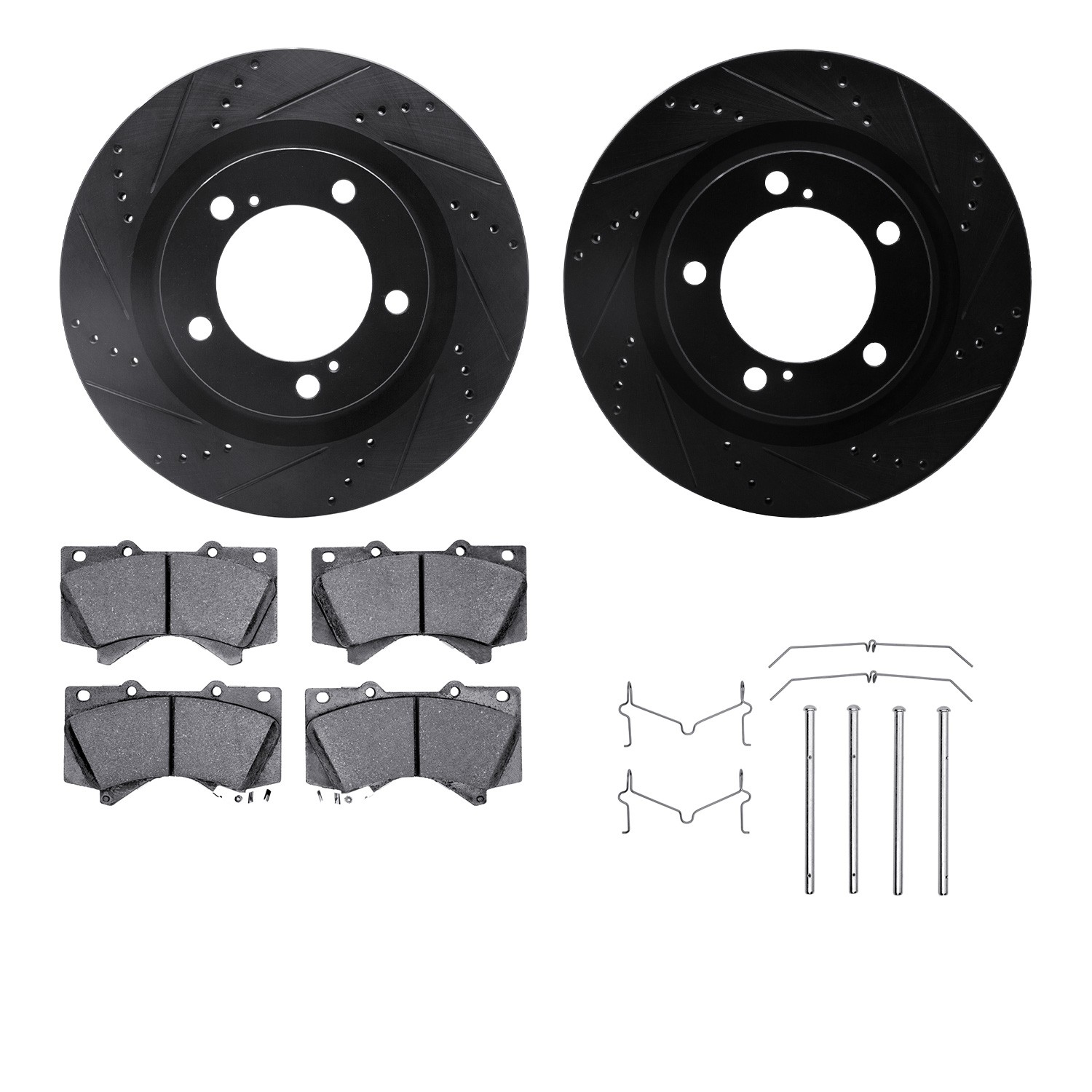 - DFC Brake Rotor - Dimpled & Slotted - Black w/5000 Brake Pads & HW Kit