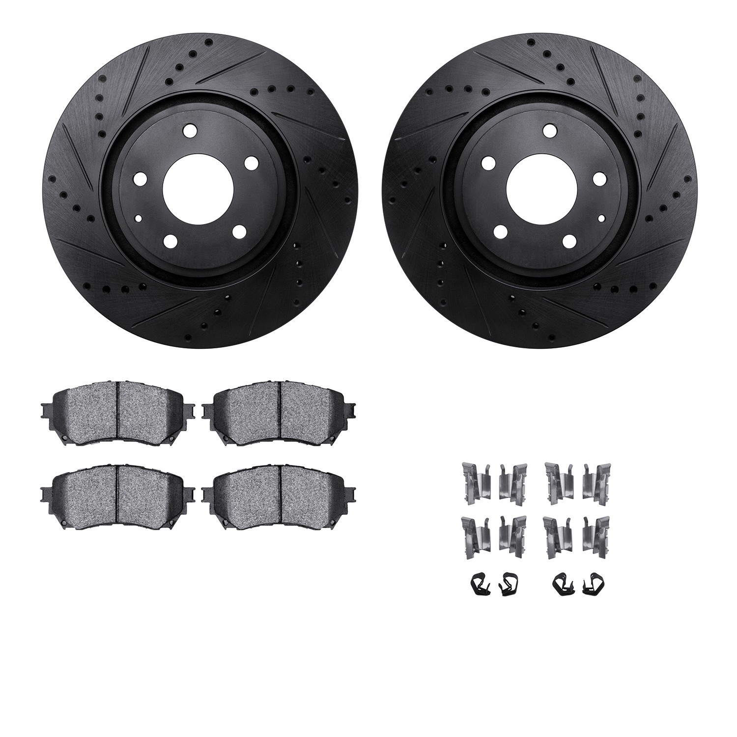 - DFC Rotors-Drilled & Slotted-Black w/ 5000 Advanced Brake Pads Incl Hdw