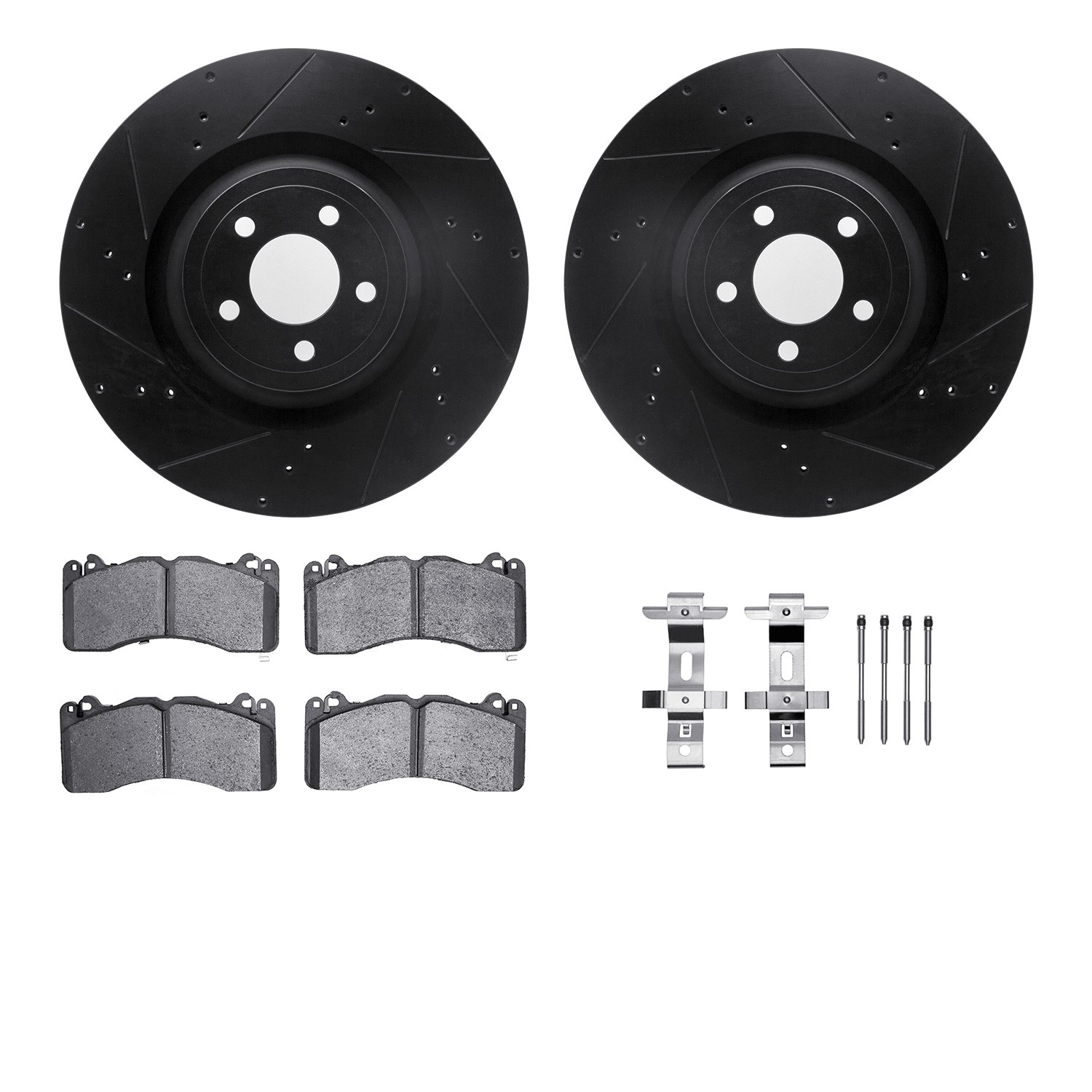 - DFC Rotors-Drilled & Slotted-Black w/ 5000 Advanced Brake Pads Incl Hdw