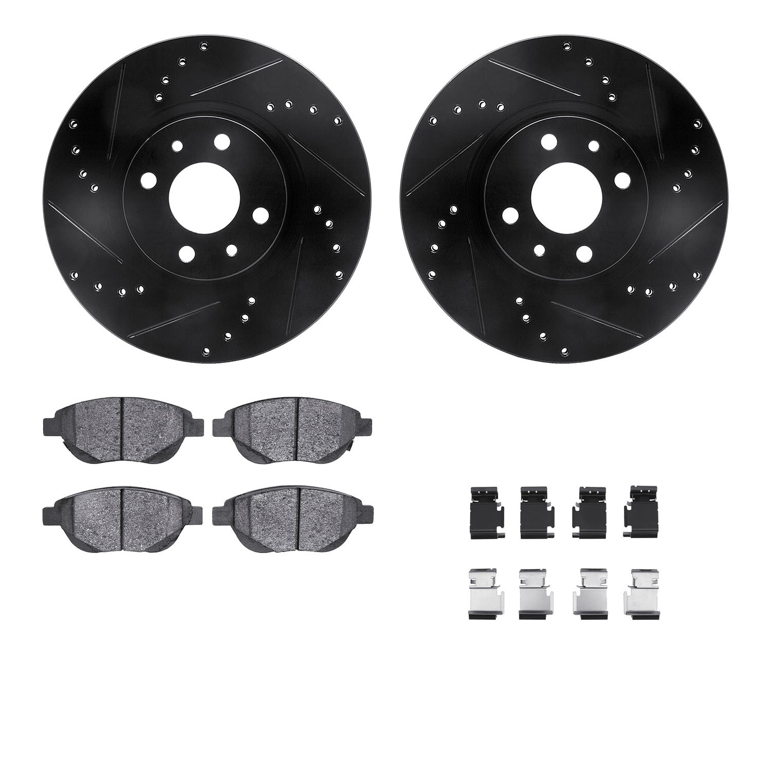 - DFC Rotors-Drilled & Slotted-Black w/ EURO 5000 Ceramic Brake Pads Incl Hdw