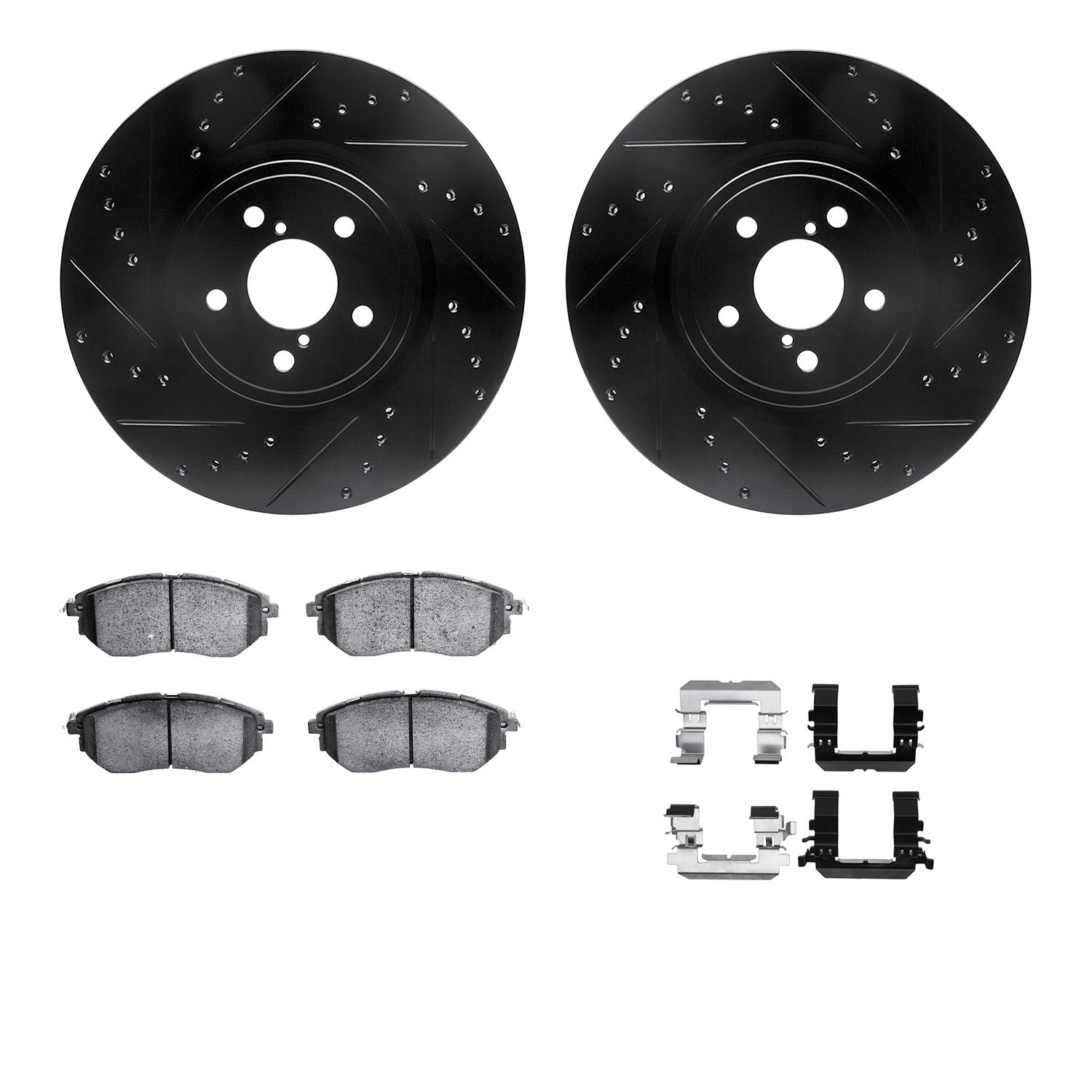 - DFC Rotors-Drilled & Slotted-Black w/ EURO 5000 Ceramic Brake Pads Incl Hdw