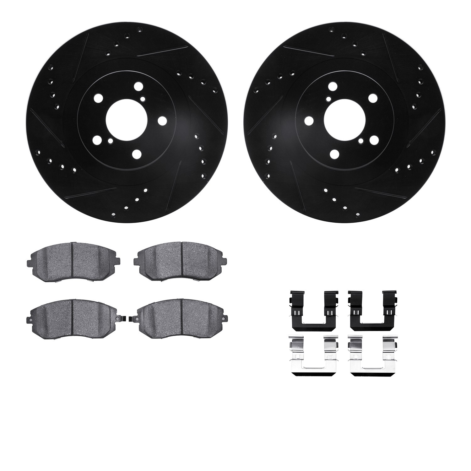 - DFC Rotors-Drilled & Slotted-Black w/ EURO 5000 Ceramic Brake Pads Incl Hdw