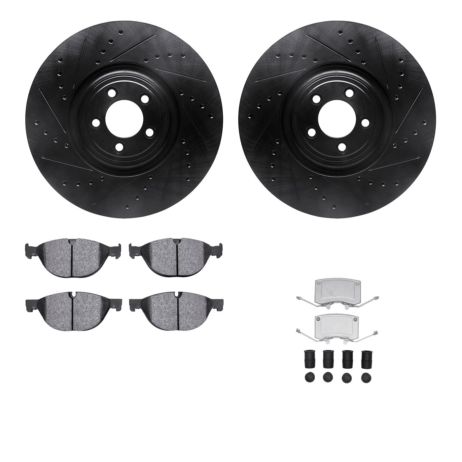 - DFC Rotors-Drilled & Slotted-Black w/ EURO 5000 Ceramic Brake Pads Incl Hdw