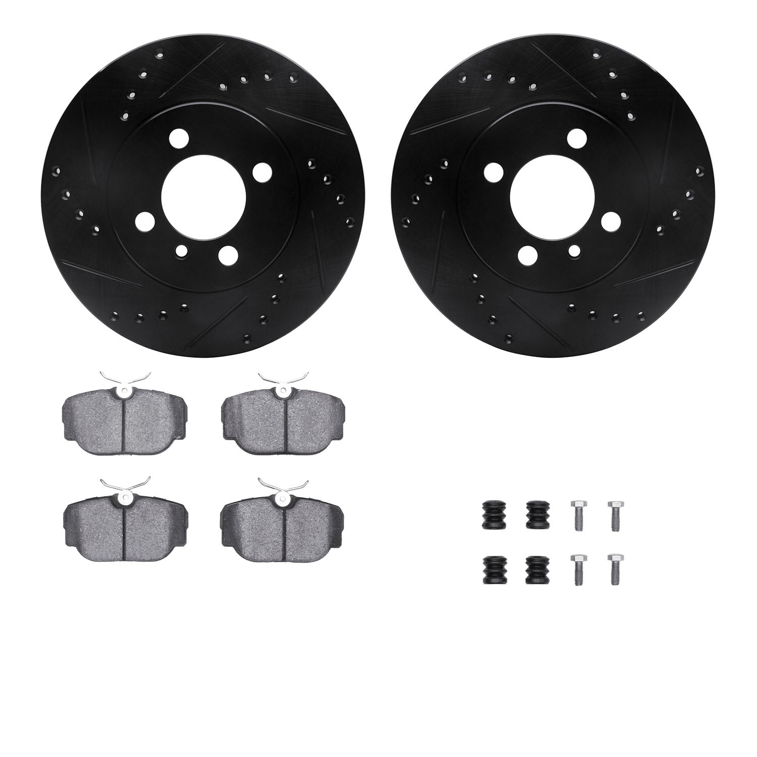 - DFC Rotors-Drilled & Slotted-Black w/ EURO 5000 Ceramic Brake Pads Incl Hdw
