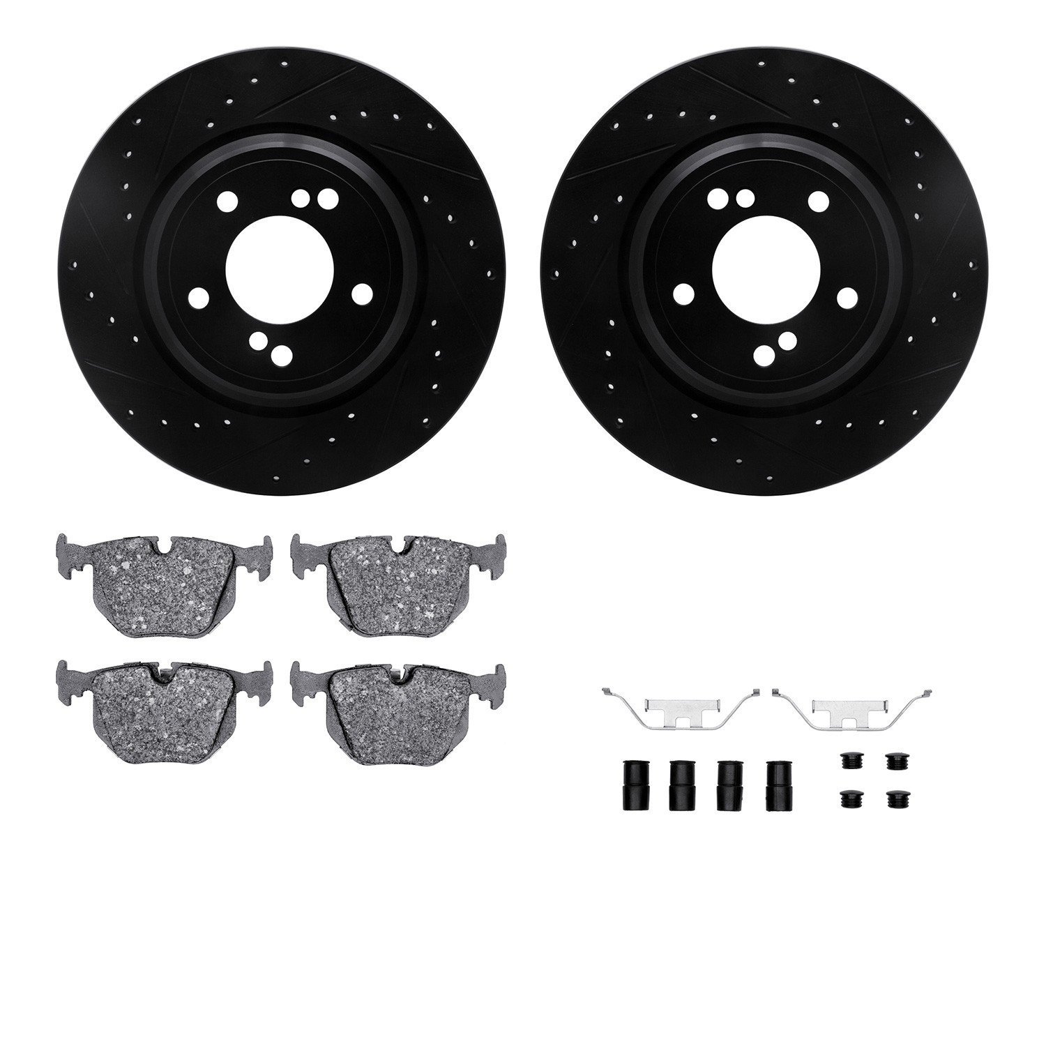- DFC Rotors-Drilled & Slotted-Black w/ EURO 5000 Ceramic Brake Pads Incl Hdw