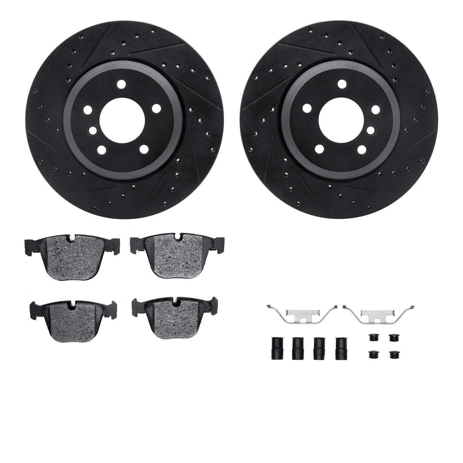 - DFC Rotors-Drilled & Slotted-Black w/ EURO 5000 Ceramic Brake Pads Incl Hdw