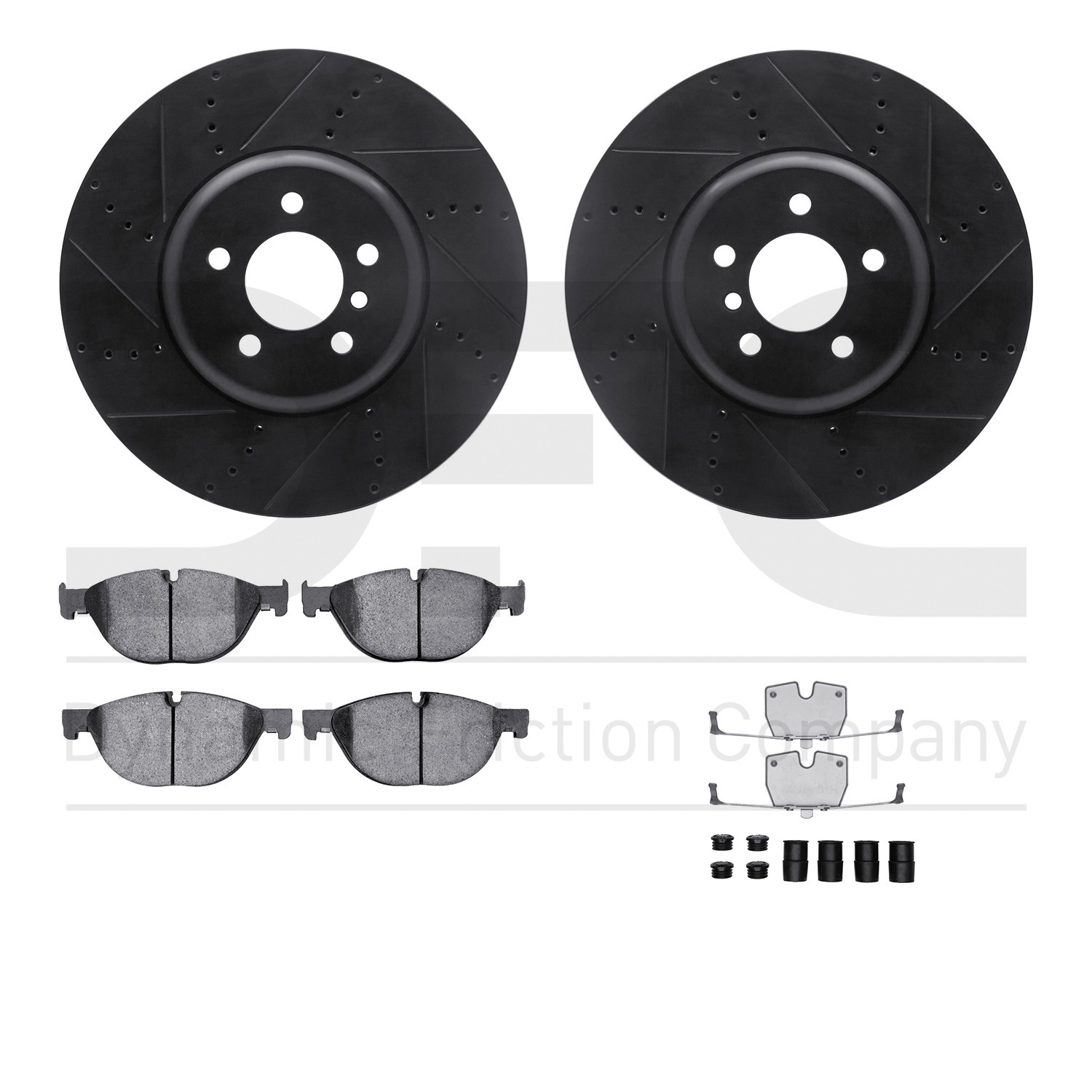 - DFC Rotors-Drilled & Slotted-Black w/ EURO 5000 Ceramic Brake Pads Incl Hdw