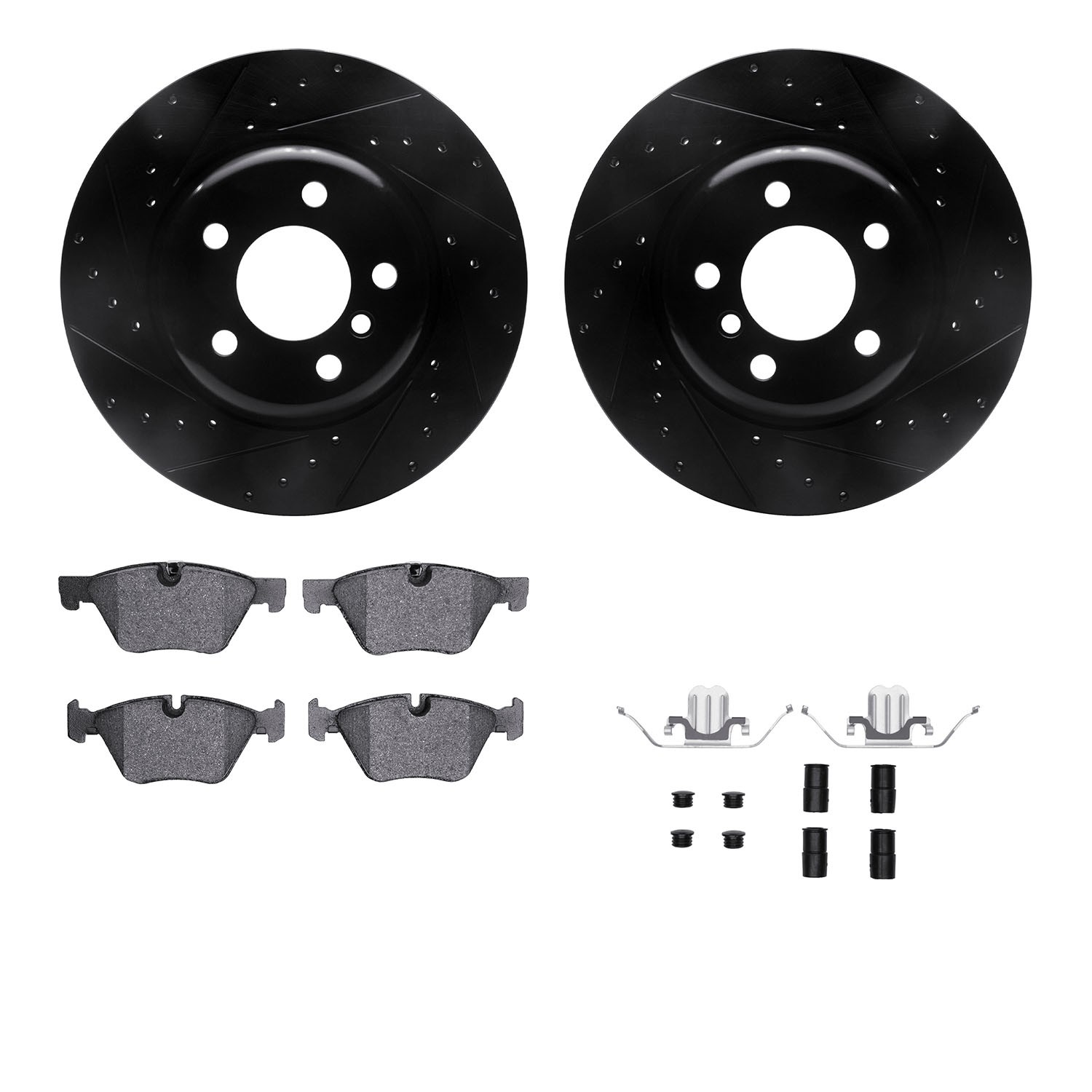 - DFC Rotors-Drilled & Slotted-Black w/ EURO 5000 Ceramic Brake Pads Incl Hdw