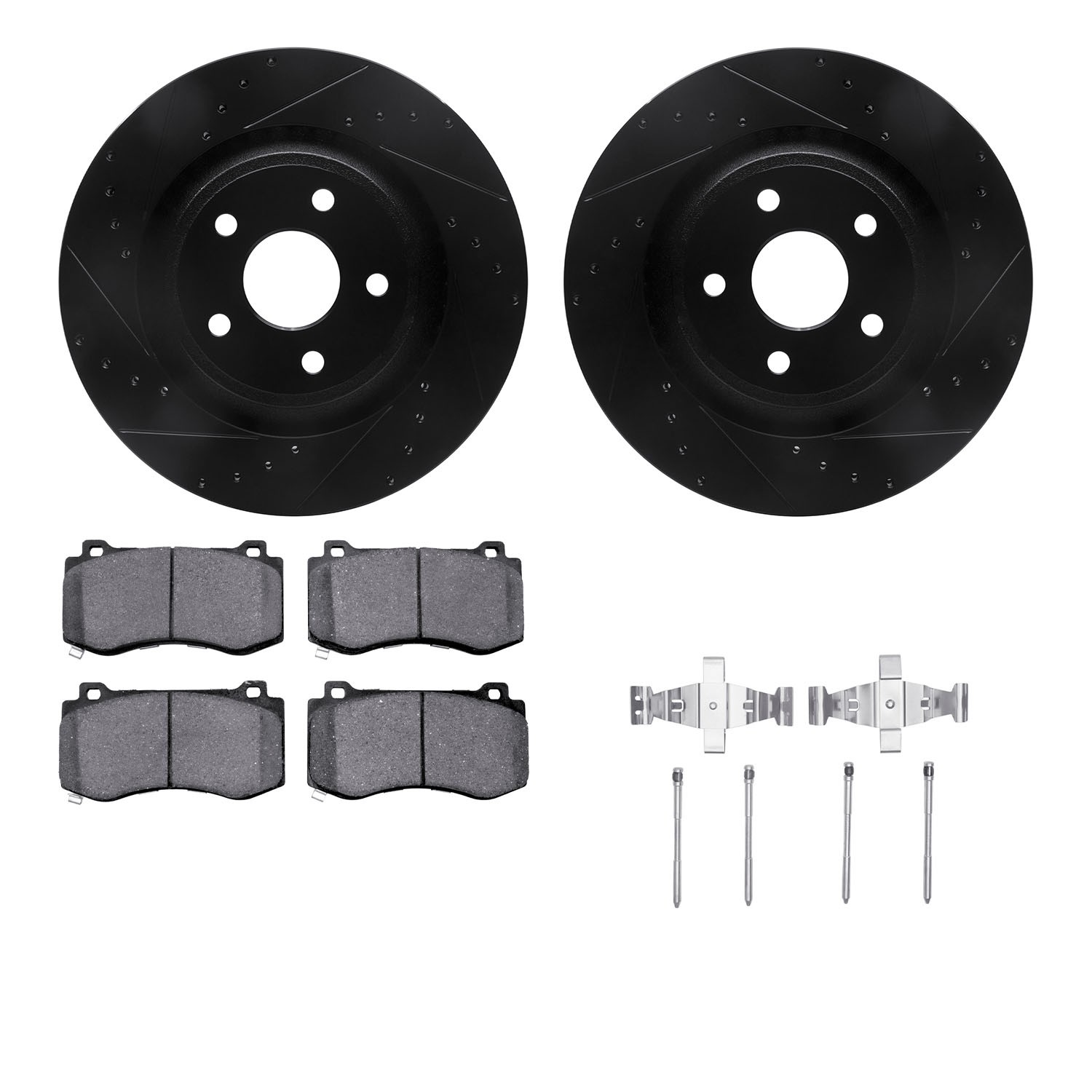 - DFC Rotors-Drilled & Slotted-Black w/ EURO 5000 Ceramic Brake Pads Incl Hdw