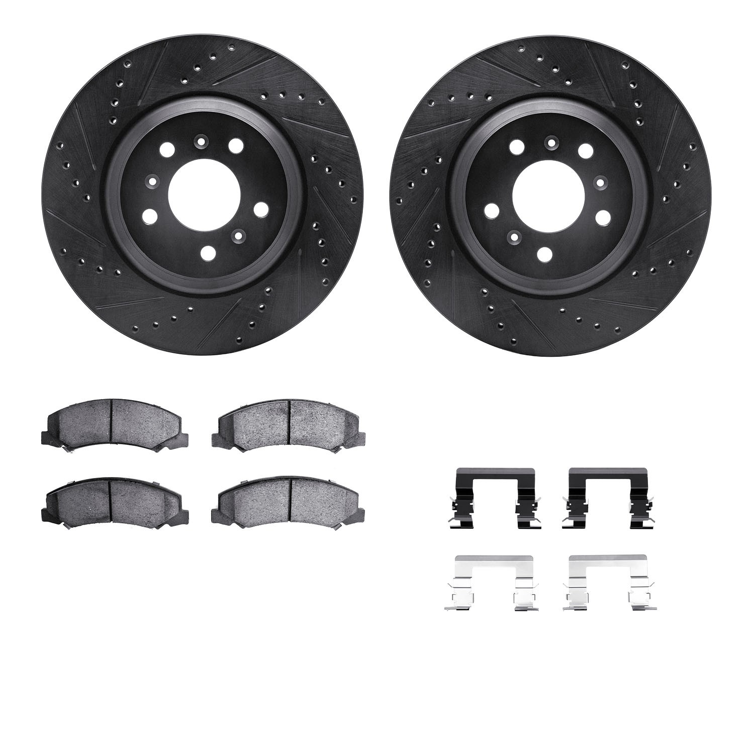 - DFC Rotors-Drilled & Slotted-Black w/ EURO 5000 Ceramic Brake Pads Incl Hdw